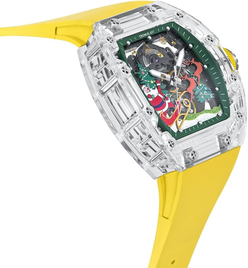CRONUSART 腕時計 メンズ, 自動巻き 時計 Tonneau Case 腕時計 透明なクリスタルケース 50m 防水 高級機械式時計 発光、サファイアミラー、フッ素ゴムバンド、 クリスマス文字盤 (高級腕時計) Amazonで販売中