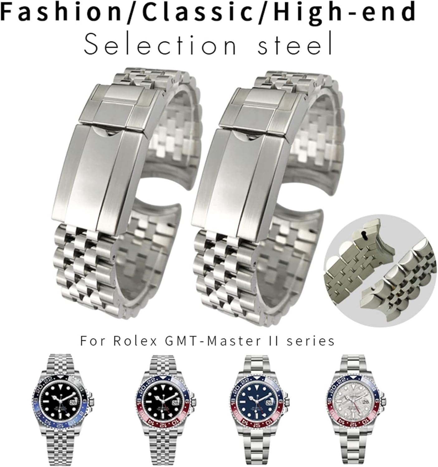 CZKE 20mm 904L ソリッドステンレススチールウォッチバンド ロレックスストラップ GMT Master II 腕時計バンド ブレスレット ジュビリー オイスタークラスプ付き  Amazonで販売中