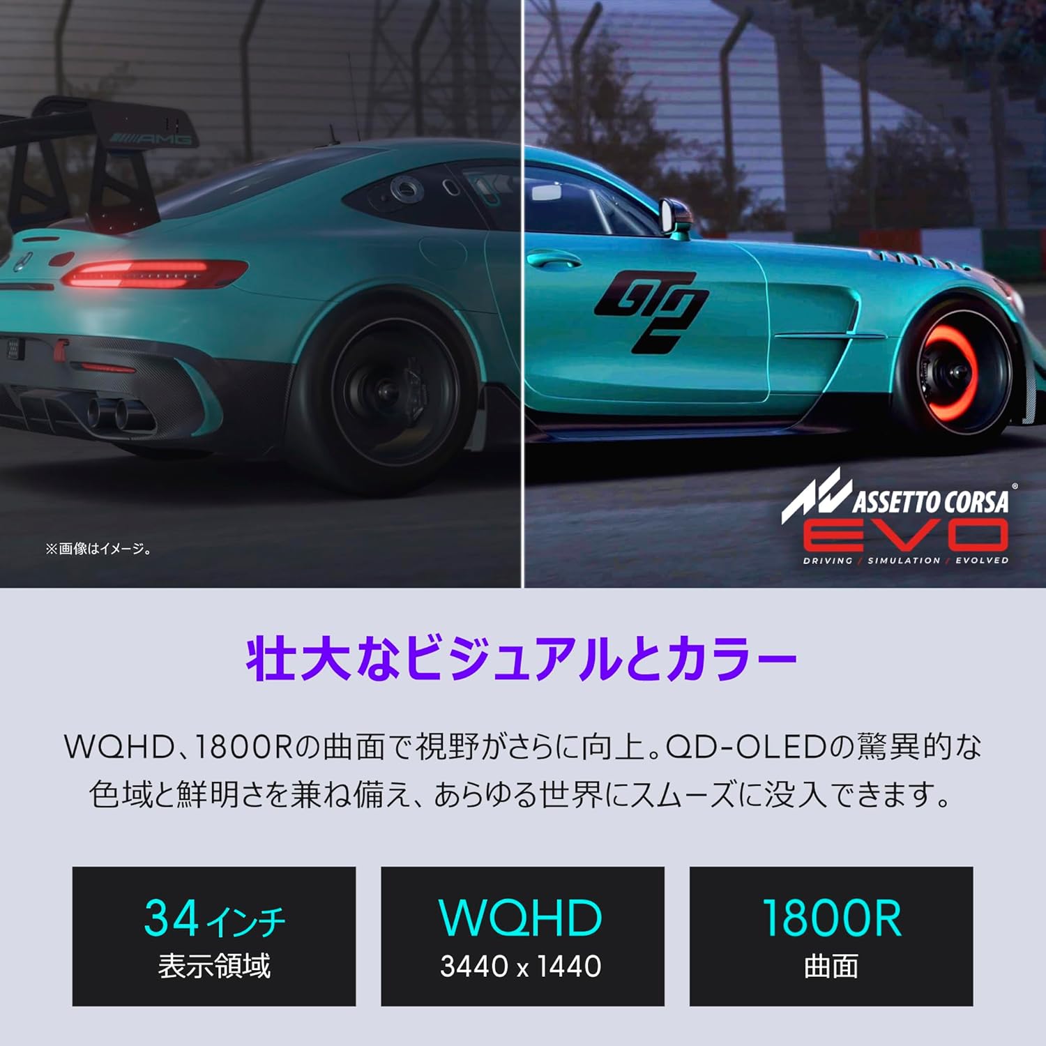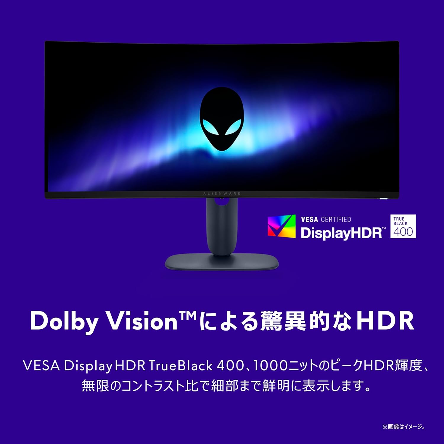 Dell AW3425DW 34インチ曲面 有機EL Alienware ゲーミングモニター(無輝点3年保証/WQHD/QD-OLED抗反射,1800R曲面/DP1.4×1,HDMI2.1×2/DCI-P3 99.3%/高さ調整,傾き/0.03ms,240Hz/G-SYNC,FreeSync Premium Pro,DisplayHDR True Black 400) Amazonで販売中
