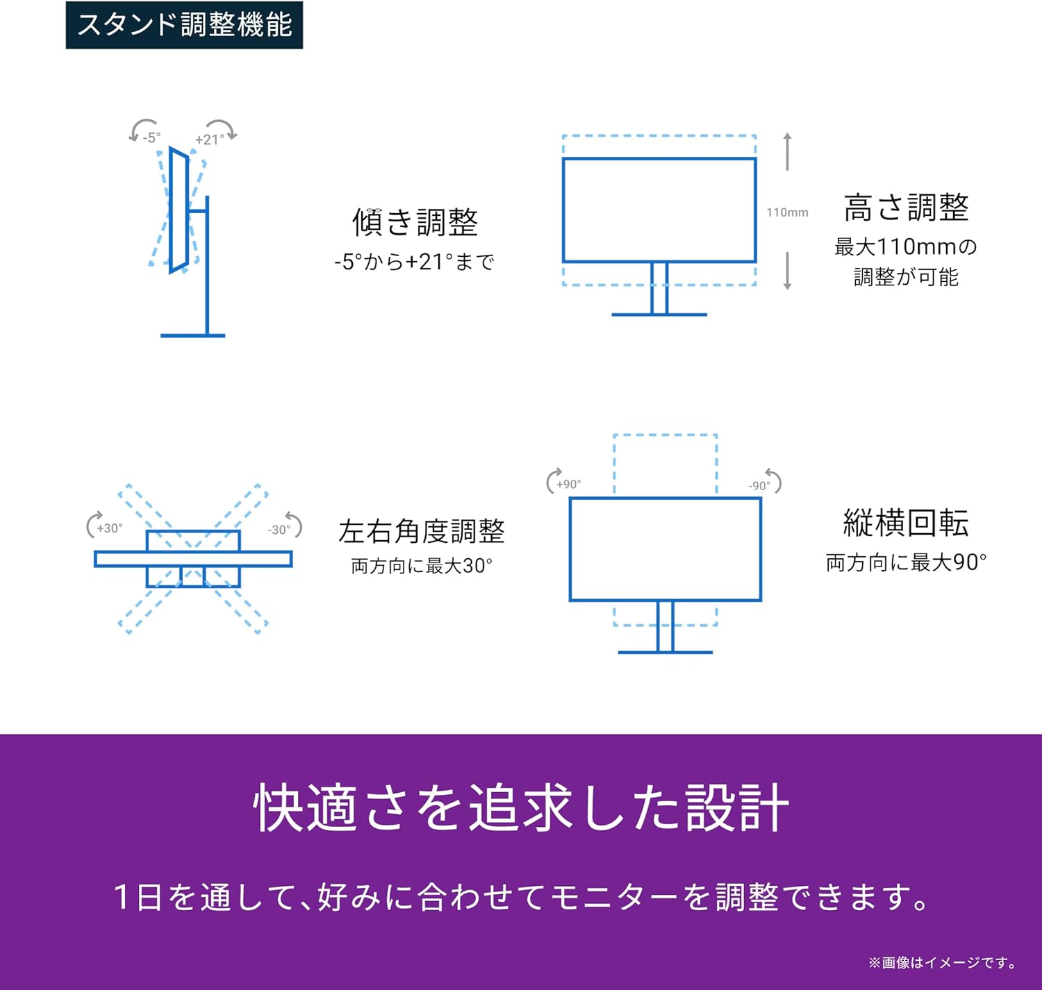[調節機能]高さ調整,傾き,スイベル,VESAマウント(100×100)