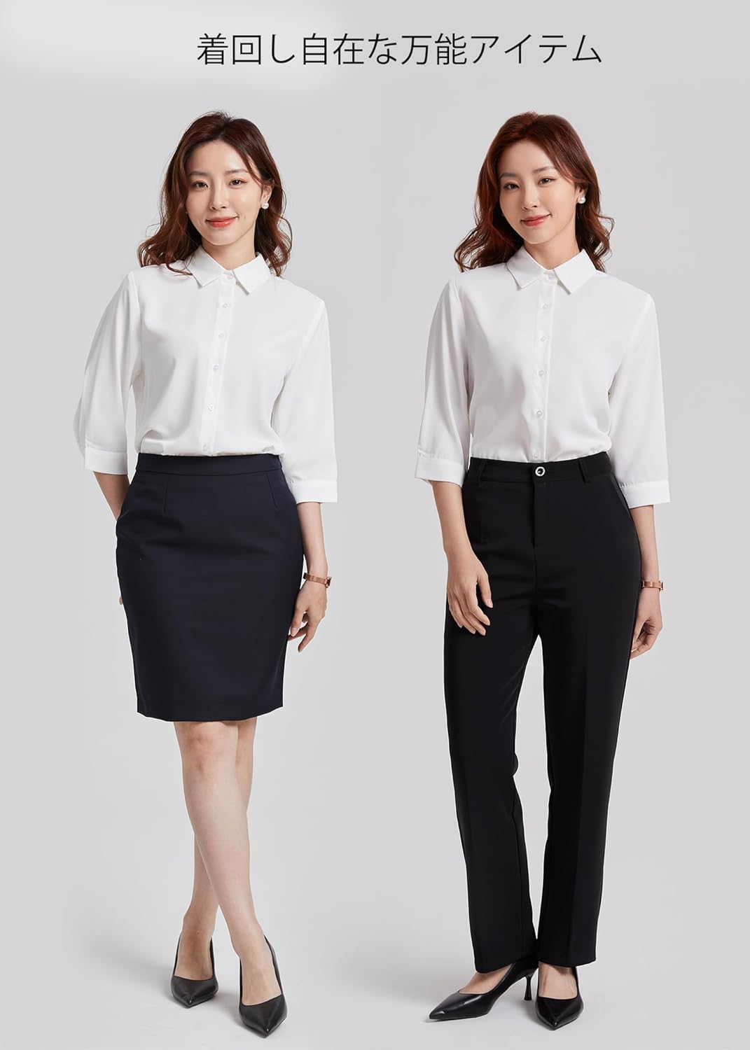[Enmain] 新登場!101S「ドレープ感 」高通気 快適 柔らかい 接触冷感 シフォン ブラウス UV防止 UPF50+ オフィス 事務服 通勤 就活 きれいめ ノーアイロン ワイシャツ レディース 七分袖 ゆったり/80番手 Amazonで販売中