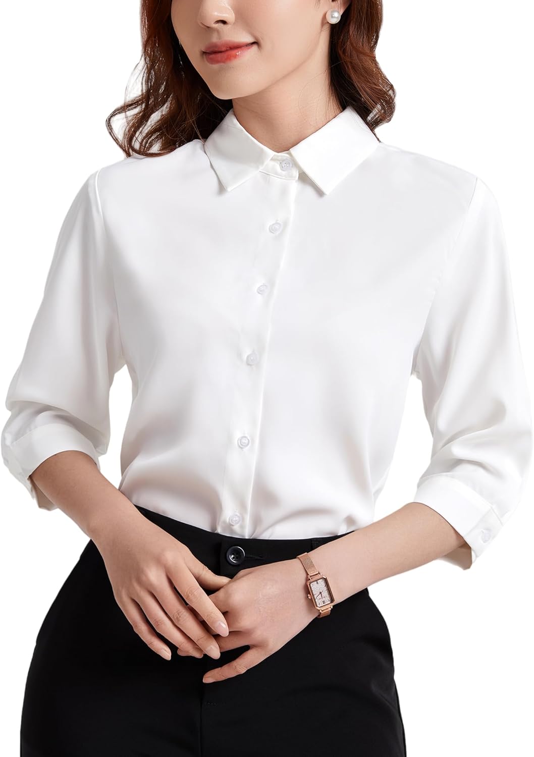 [Enmain] 新登場!101S「ドレープ感 」高通気 快適 柔らかい 接触冷感 シフォン ブラウス UV防止 UPF50+ オフィス 事務服 通勤 就活 きれいめ ノーアイロン ワイシャツ レディース 七分袖 ゆったり/80番手 Amazonで販売中