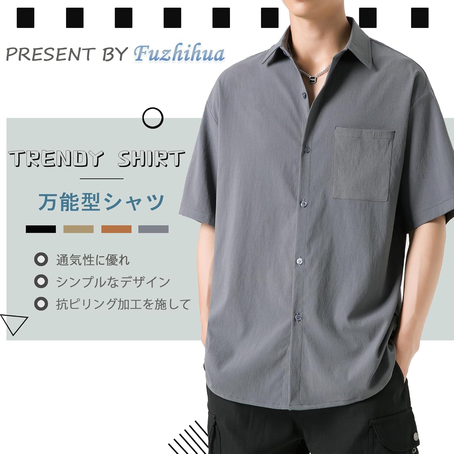 [FUZHIHUA] シャツ メンズ 長袖 半袖 夏 カジュアル ビジネス 薄手 ゆったり 無地 おしゃれ 大きいサイズ ワイシャツ 春夏秋冬服  Amazonで販売中