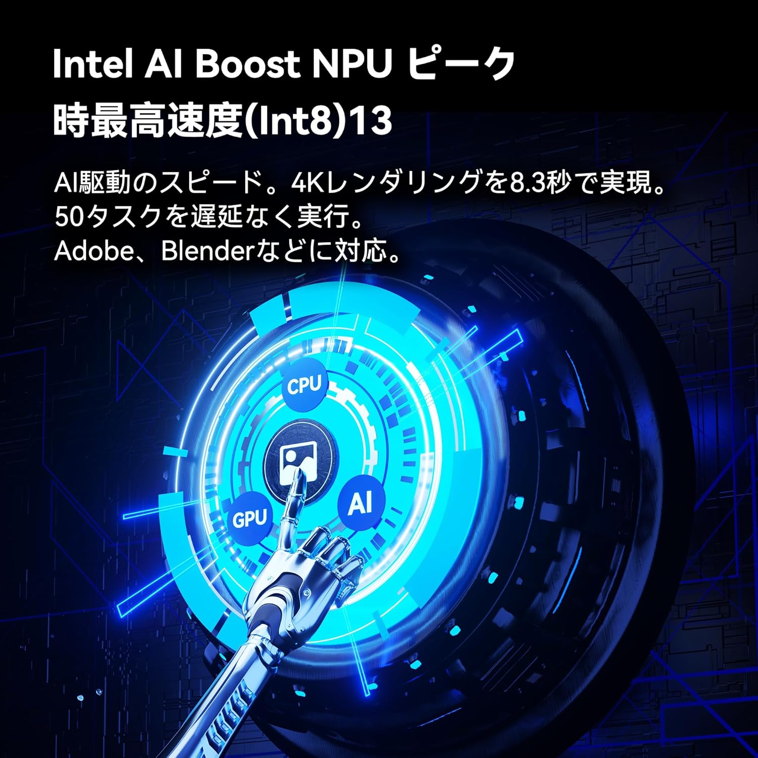 🌐🤖【2025年最強AI性能を実現:Core Ultra 9 285H】2025年登場の次世代プロセッサーCore Ultra 9 285Hは、13 TOPSのAI演算能力を有するNPU(ニューラル処理ユニット)を搭載し、CPU/GPUとの連携により総合AI性能99 TOPSという業界新基準を確立しました。前世代比180%向上した処理効率により、生成AIやリアルタイム画像編集をオフライン環境でも高速に実行可能で、PhotoshopのAI写真処理は従来の2倍以上、音声書籍変換は3倍の速度を実現しています。さらに新設計の「Intel Arc 140T GPU」を統合し、8基のXeコアを搭載することで前世代モデル(140V)比でフレームレート60%向上を達成。AIとグラフィックスの高度な融合により、クリエイティブ作業からゲームまで、モバイル端末の可能性を大きく拡張する革新的なチップです。