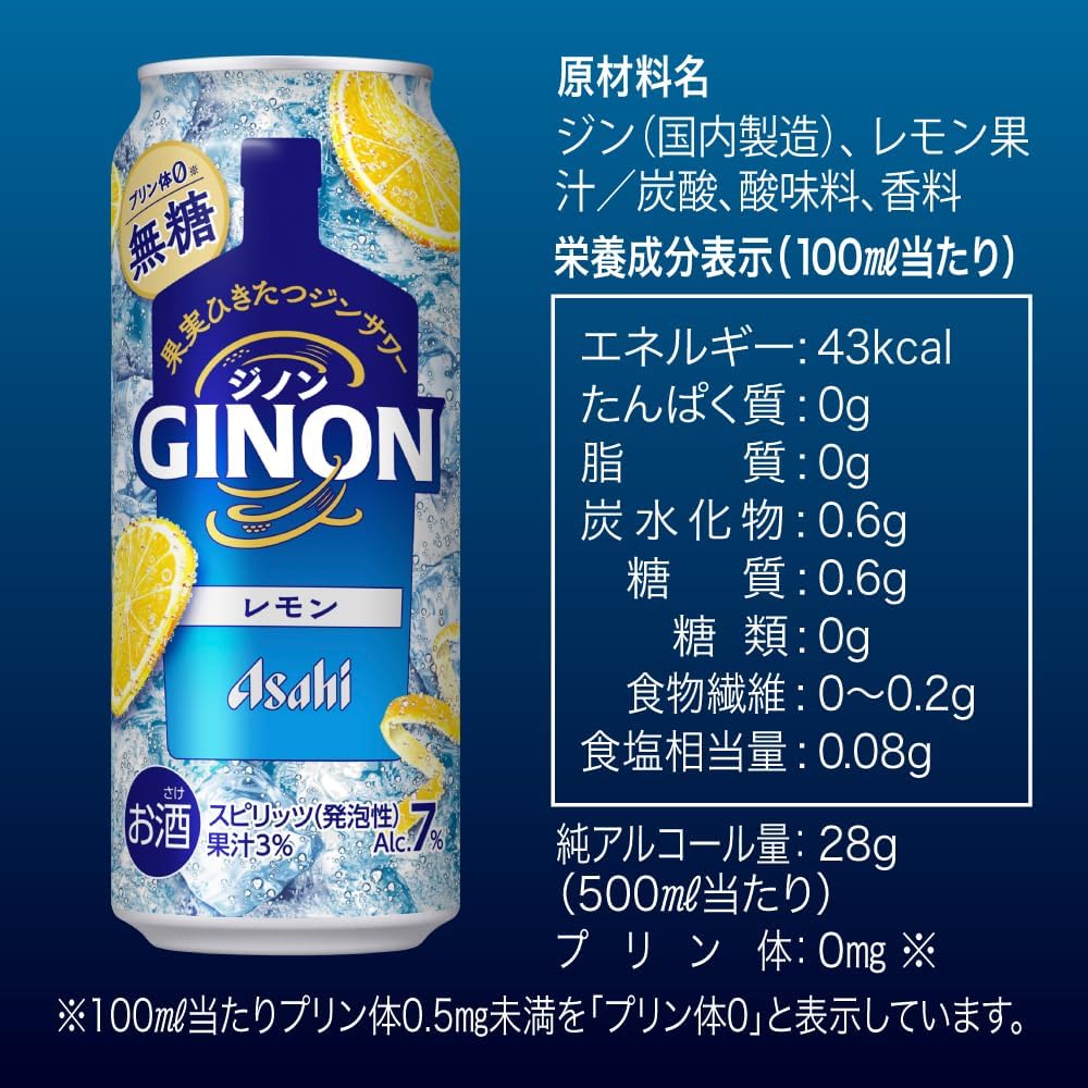 GINON(ジノン) レモン アサヒ チューハイ500ml×24本 ジンサワー 酎ハイ お酒 【無糖】 Amazonで販売中