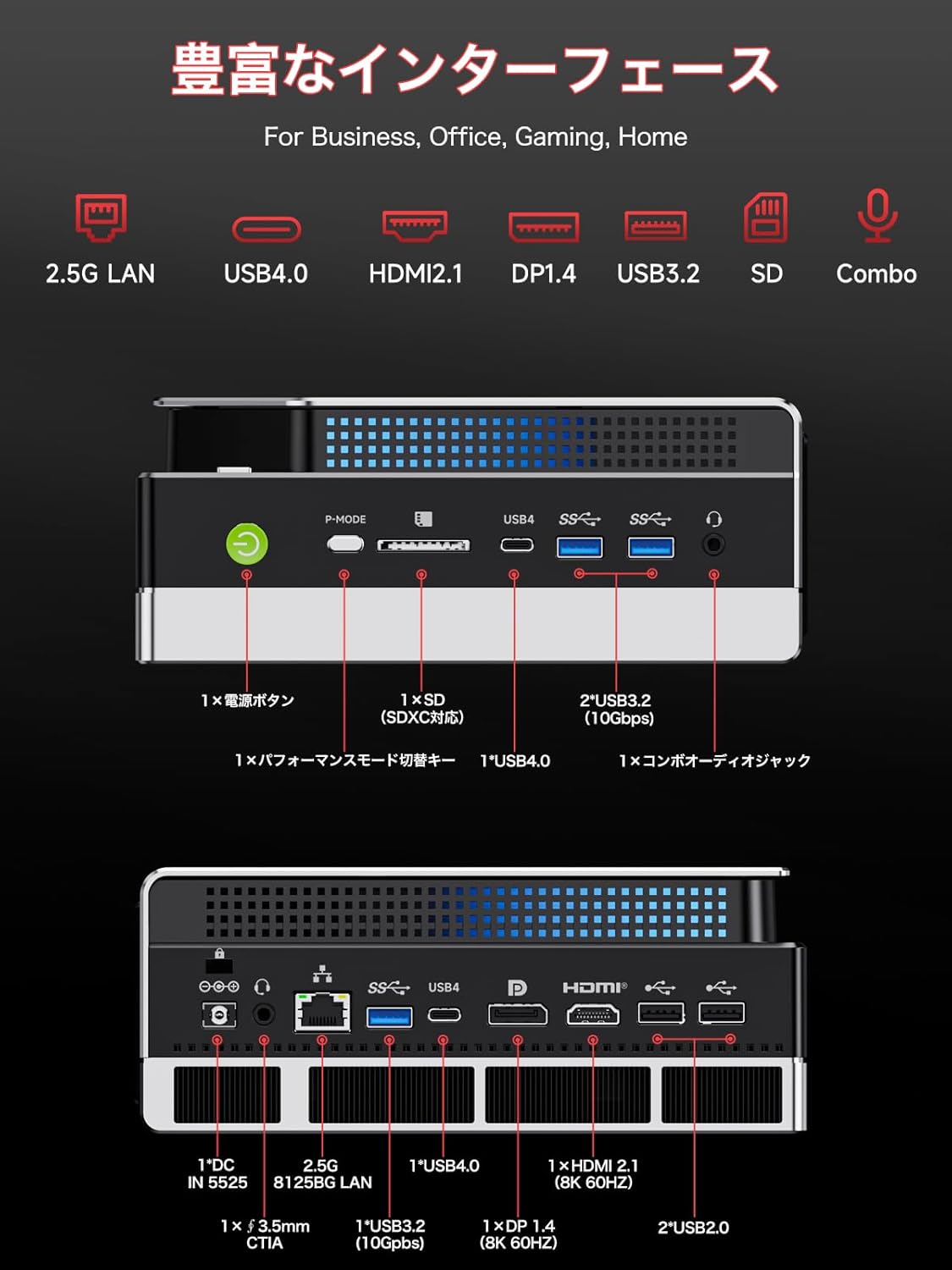 【最大8K対応 4画面同時出力 — HDMI 2.1/DP/USB4*2をフル搭載】8K/60Hzまたは4K/240Hz対応のHDMI 2.1・DP 1.4・USB4(40Gbps)を完備し、最大4画面まで同時出力可能。業務用ディスプレイやVR環境にも対応し、設計・編集・AIビジュアライズ用途に最適です。