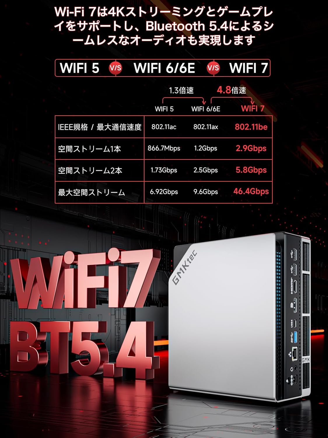 【Wi-Fi 7 + 2.5G LAN対応 — あらゆる接続に最速で応える通信性能】新規格のWi-Fi 7(2.9Gbps)と2.5Gbps LANポートを搭載。テレワーク・クラウドAI処理・オンラインゲームなど、あらゆるネットワーク環境で高速かつ低遅延の通信を提供します。