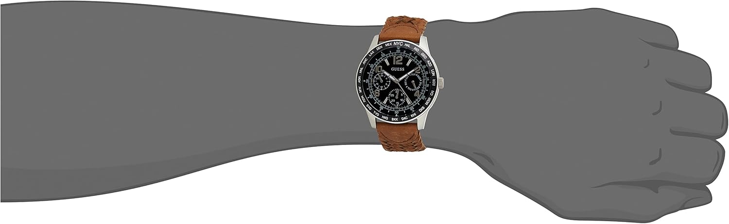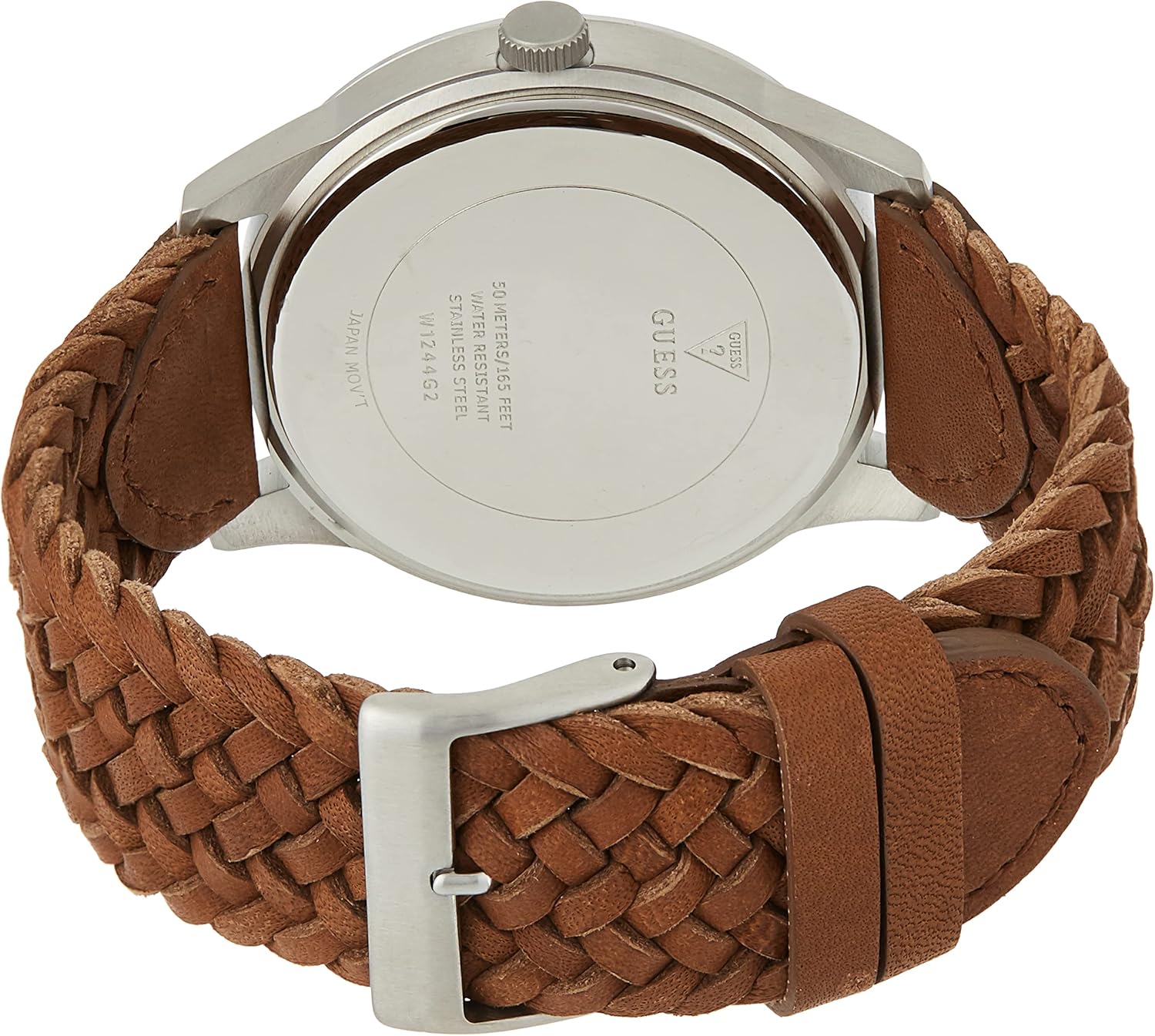 GUESS メンズ クォーツウォッチ アナログ表示とレザーストラップ W1244G2, ブラウン, ストラップ  Amazonで販売中