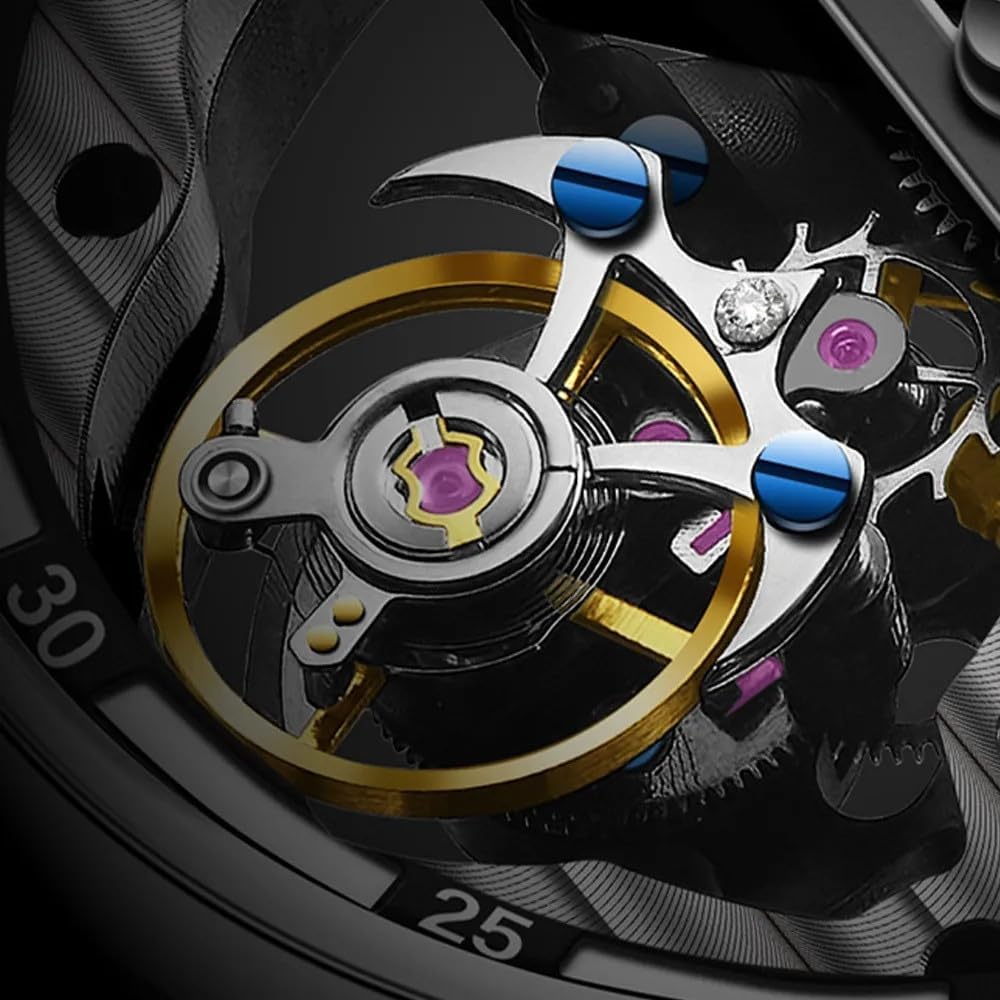 本物の手巻き機械式陀飛輪腕時計:真陀飛輪ムーブメントかつ日差は約±10秒で、振幅は21600 Hz/Hrである。これは世界で一番安い陀飛輪腕時計の一つである。陀飛輪は表業界での最高峰といわれ、本当に印象的な工事の壮挙である。一枚の陀飛輪ムーブメントの平均生産には6ヶ月の製造サイクルが必要で、450以上の工程が必要で、70以上の橋板の研磨工程が必要である。トゥールビヨンはミニッツリピーターおよびパーペチュアルカレンダーと共に世界三大複雑機構の1つです。トゥールビヨンは、フランス語で“渦(うず)”という意味を持ちます。ガンギ車やデンプを始め、細かで多数のパーツそれぞれが綿密に組み立てられ、独特の動きを繰り広げます。トゥールビヨン時計は、1795年にスイスの時計マスターであるルイブレゲによって発明されたクロック速度調整装置です。 ブレゲは、時計仕掛けの重力によって引き起こされるエラーを修正するためにトゥールビヨンメカニズムを発明しました。