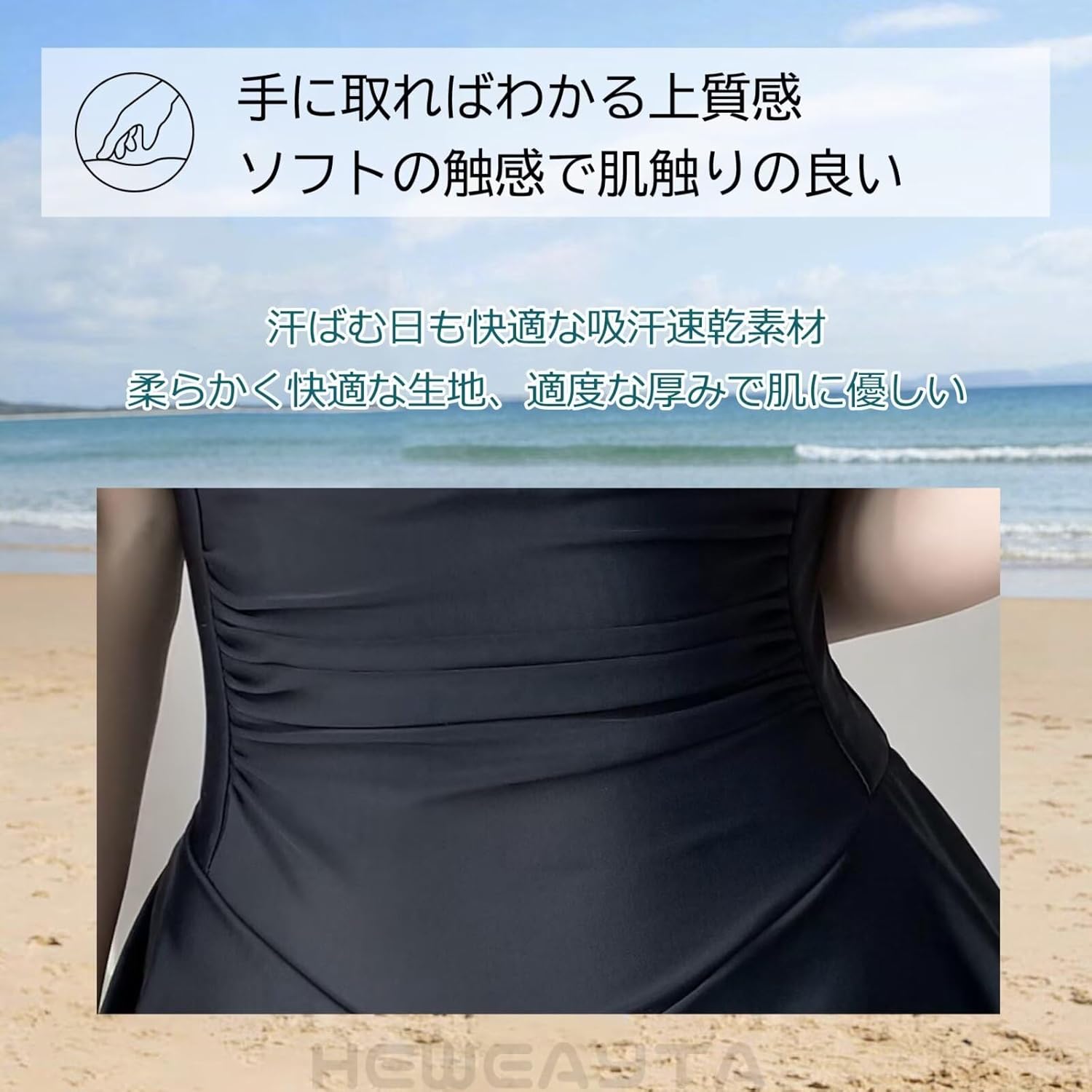 日焼けが気になる方でも高遮蔽デザイン 動きやすく、水着初心者でも着こなしやすい。