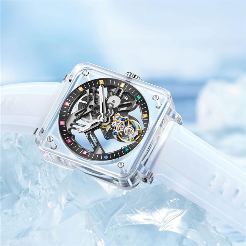 JDLERMY AESOP 男性用 シンプルビンテージフライホイール腕時計 アナログ 手巻き機械式 両面中空ダイヤモンドウォッチ メンズ ゴム製 サファイアクリスタル スケルトン トゥールビヨン ビジネス時計 防水 スーパールミネセンス (7058G-B-cai) Amazonで販売中