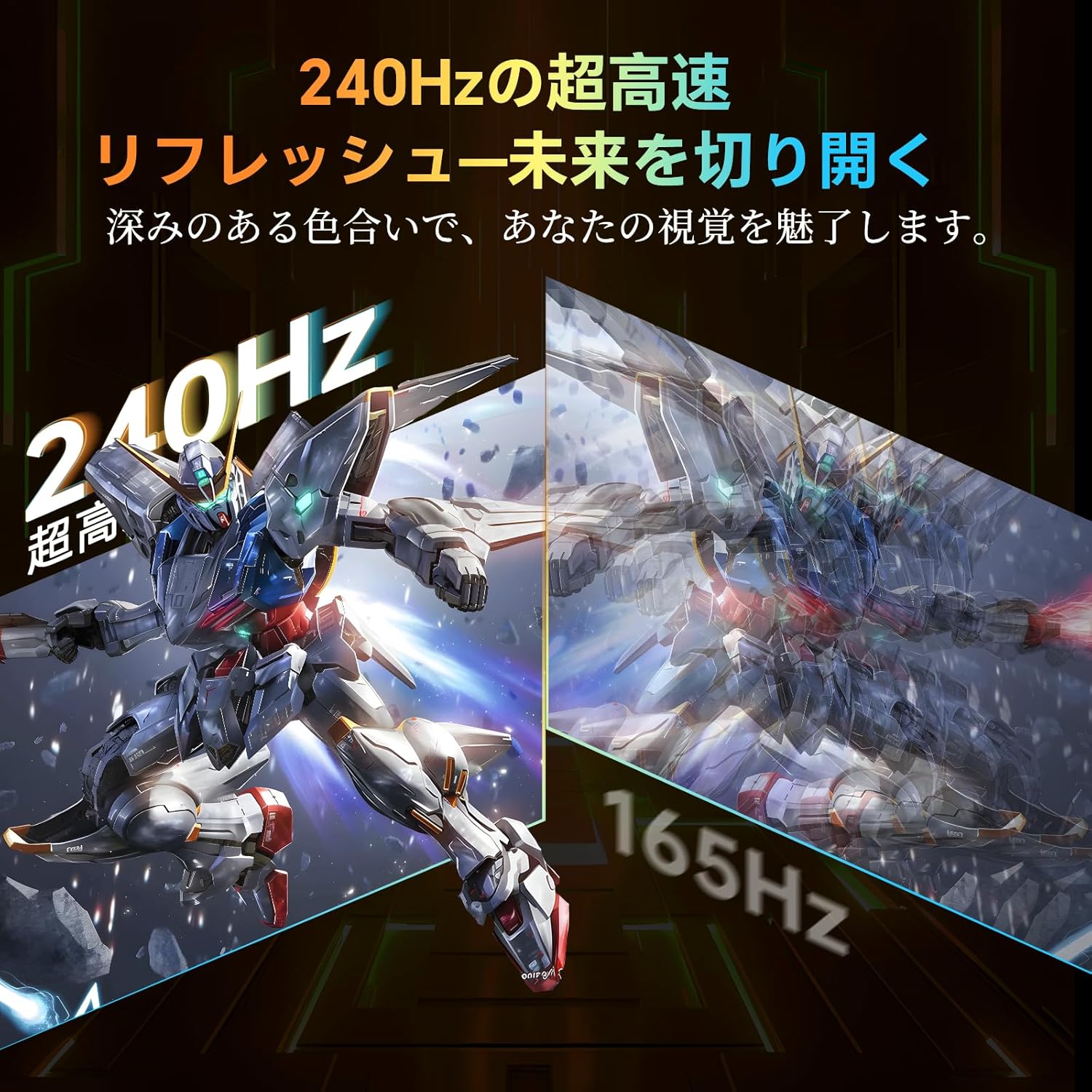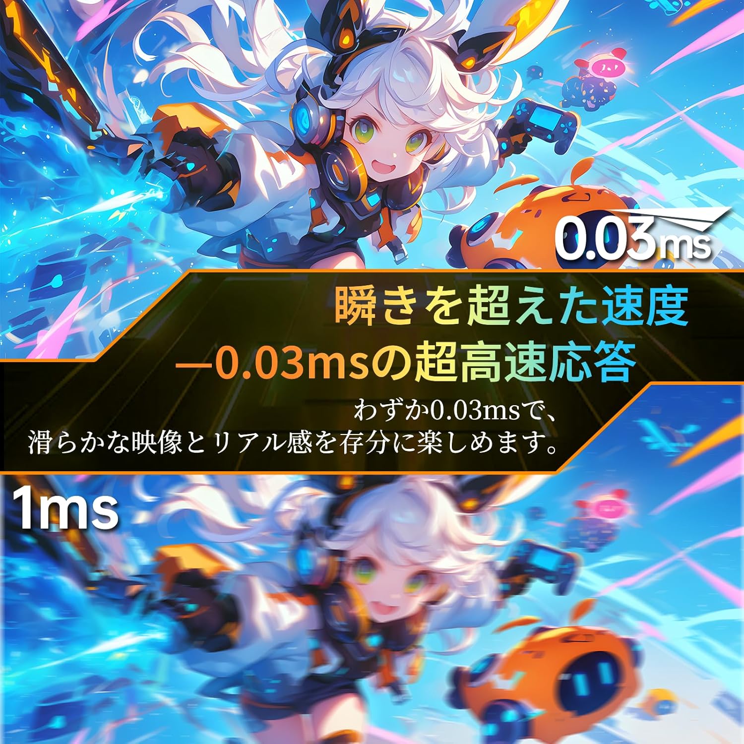 【圧倒的応答性能】当社の OLED ゲーミングモニターは、WQHD 2560×1440 の解像度を備え、240Hz の高リフレッシュレートと 0.03ms の驚異的な応答速度を実現しています。OLED の自発光特性により、画面の切り替えが瞬時に行われます。これにより、競技ゲームで敵の微細な動きも逃さず捉えることができ、画面の遅延やカクつきを解消し、勝利への道を開きます。