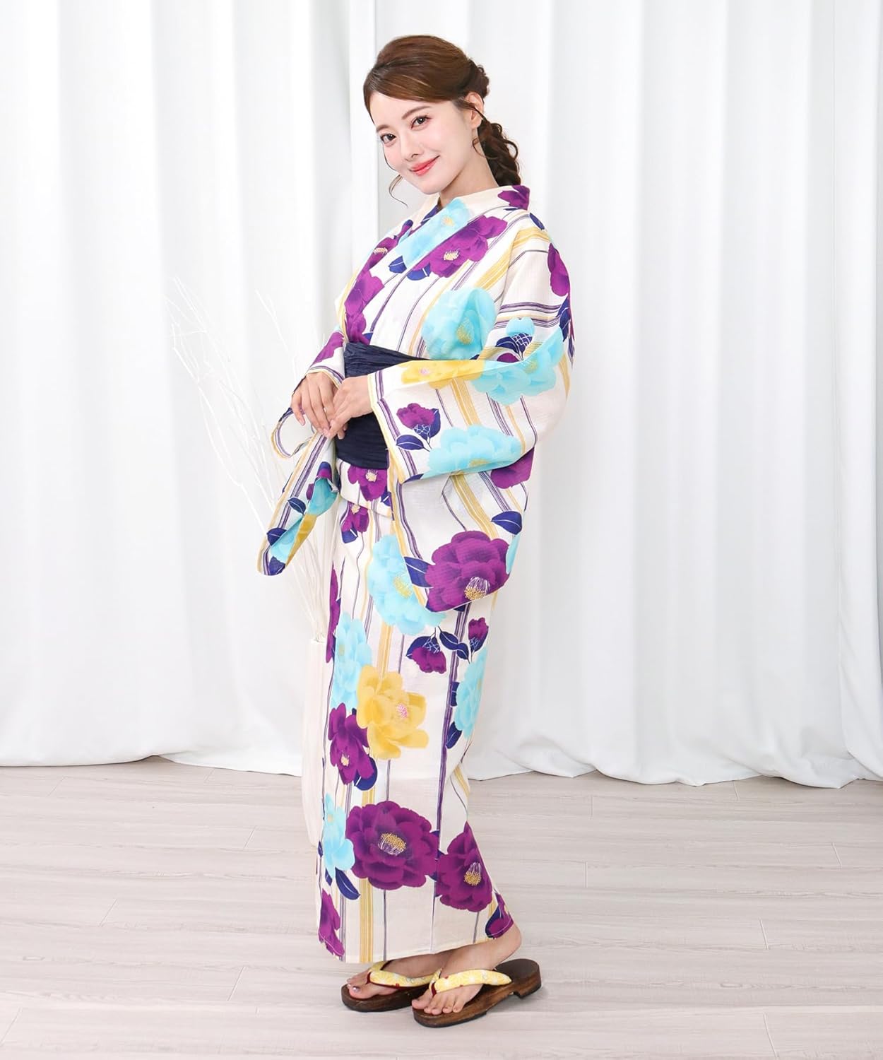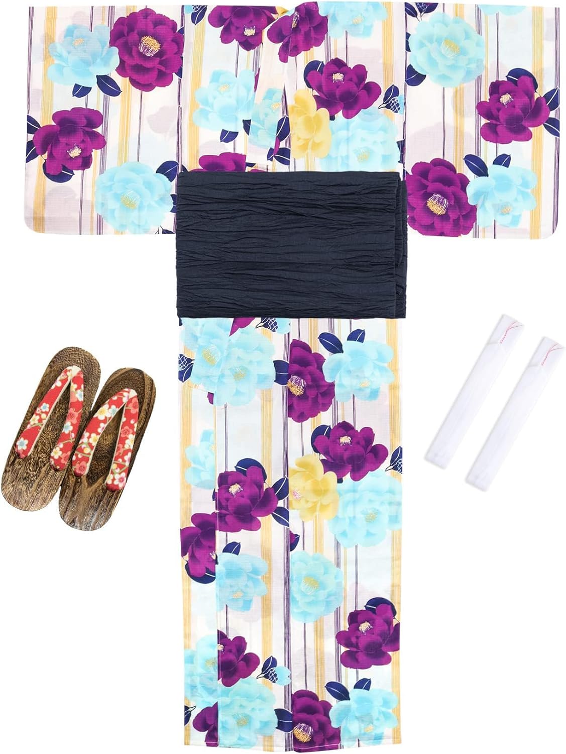 [KYOETSU] [キョウエツ] 浴衣セット 変わり織 6点セット(浴衣、兵児帯、肌着、下駄、腰紐) レトロ C レディース Amazonで販売中