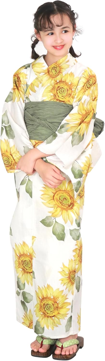 [KYOETSU] [キョウエツ] 浴衣セット 女の子 生成り 変わり織 3-5点セット(浴衣、兵児帯、下駄、腰紐) ガールズ ジュニア H Amazonで販売中