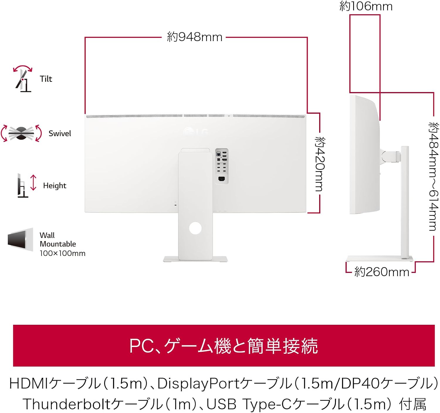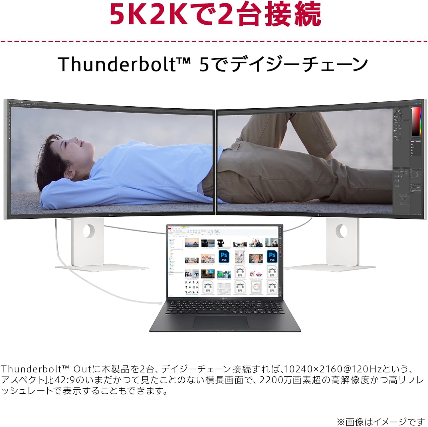 LG ウルトラワイドモニター LG UltraFine™ Display 40U990A-W 39.7インチ/5120×2160(2500R曲面型)/120Hz/Nano IPS Black/DCI-P3 99%/DisplayHDR 600/Thunderbolt 5 (In/Out)対応モデル/PD 最大96W給電/HDMI×2/DisplayPort/USB Type-C/LAN端子/VRR Amazonで販売中