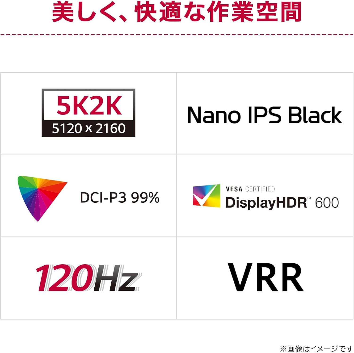 【高解像度ウルトラワイド画面がさまざまなシーンで活躍】 21:9 解像度5120×2160(5K2K) 4Kの33%横長な5K2K(5120×2160)の21:9ウルトラワイド画面による圧倒的な情報量と、より緻密な色再現が可能になったNano IPS Blackによる高画質をエキスパートたちに。大量の情報を収集、処理、分析する必要があるコンテンツクリエイターやビデオ編集者、ウェブデザイナー、イラストレーター、グラフィックデザイナー、アプリ開発者、プログラマー、投資家など、あらゆる分野のプロフェッショナルに対して、さらに高いニーズに応えるモニターが誕生しました。