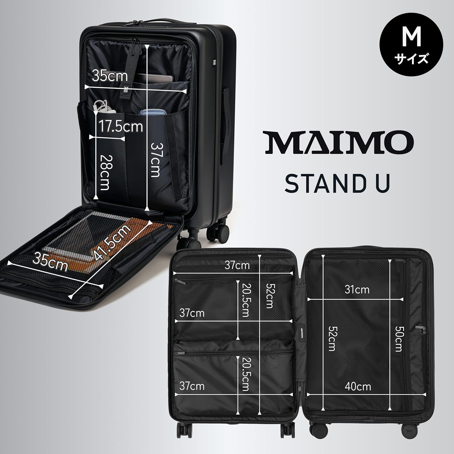 [MAIMO] スーツケース Mサイズ 日本メーカー 【フロントオープンで荷物がサッと取り出せる】 静音キャスター ストッパー付き HINOMOTO フロントオープン 前開き キャリーバッグ キャリーケース 預け入れ STAND U Amazonで販売中