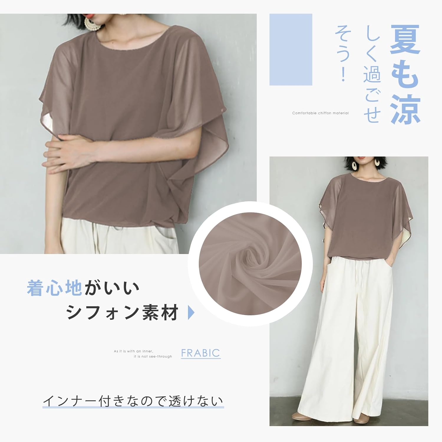 [MEME XTRA] メメエクストラ ブラウス レディース 半袖 シャツ カットソー オフィス 夏 春 シフォン フリル フレア トップス tシャツ 夏服 裏地付 ドルマン おしゃれ 大きいサイズ ゆったり 無地 かわいい キレイめ ジョーゼット 上品  Amazonで販売中