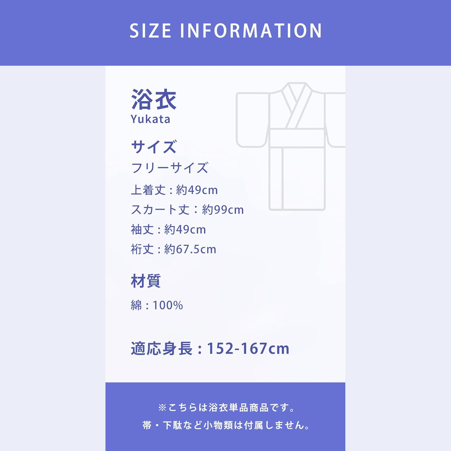フリーサイズの浴衣になります。ご身長約152~167cmの方と幅広く対応しております。