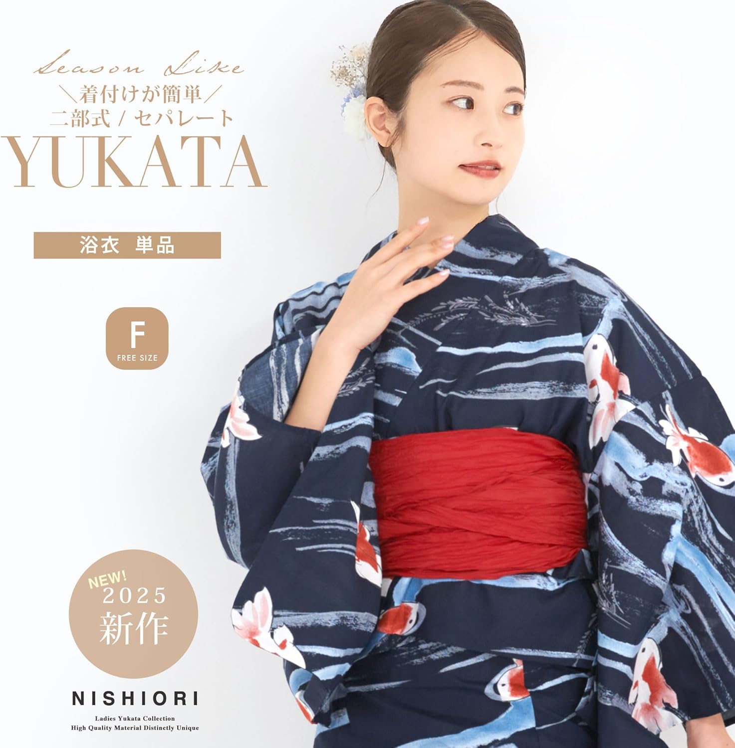 [NISHIORI] 二部式浴衣 レディース セパレート 浴衣単品 簡単着付け 夏祭り 花火大会 女性用 トレンド柄 和モダン 着崩れしにくい Amazonで販売中