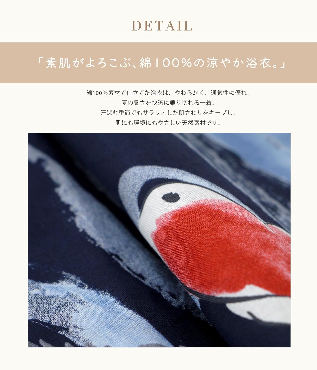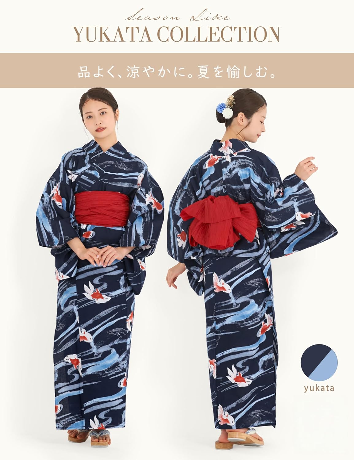 帯を巻くだけで本格的な浴衣姿に仕上がります。 軽やかな着心地 通気性に優れた素材を使用しており、夏のイベントでも快適。 洗濯にも対応しており、毎年繰り返し着られます。
