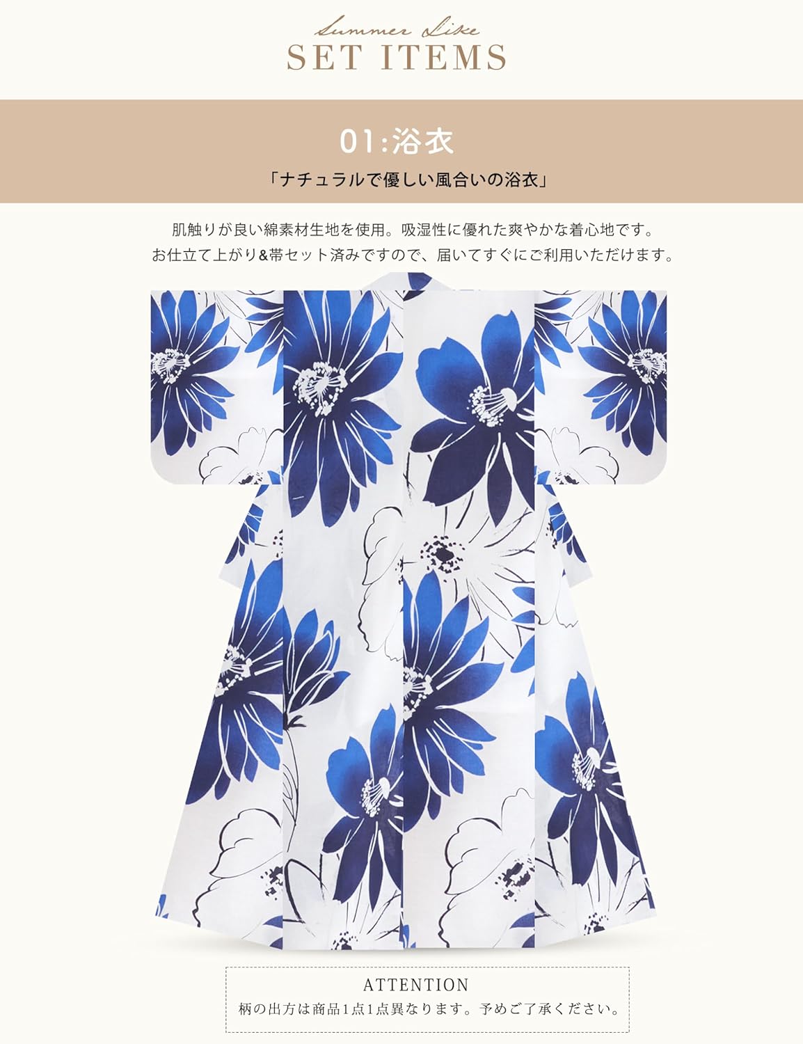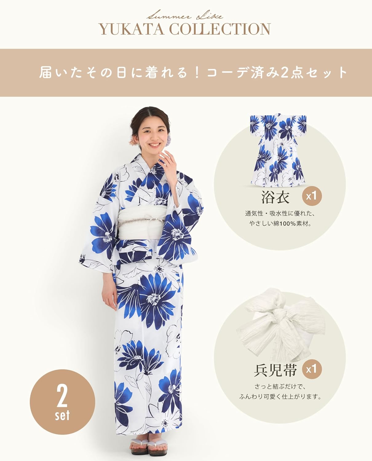 届いてスグに着れる! 【浴衣と兵児帯の簡単おしゃれ2点セット】