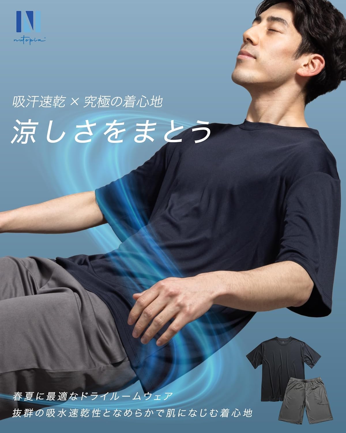 [Nutopia] メンズ パジャマ 上下 【驚きの瞬間速乾】 春夏 ドライ ゆったり 蒸れない 部屋着 ルームウェア なめらか ストレッチ 半袖 Tシャツ ハーフパンツ 大きいサイズ  Amazonで販売中