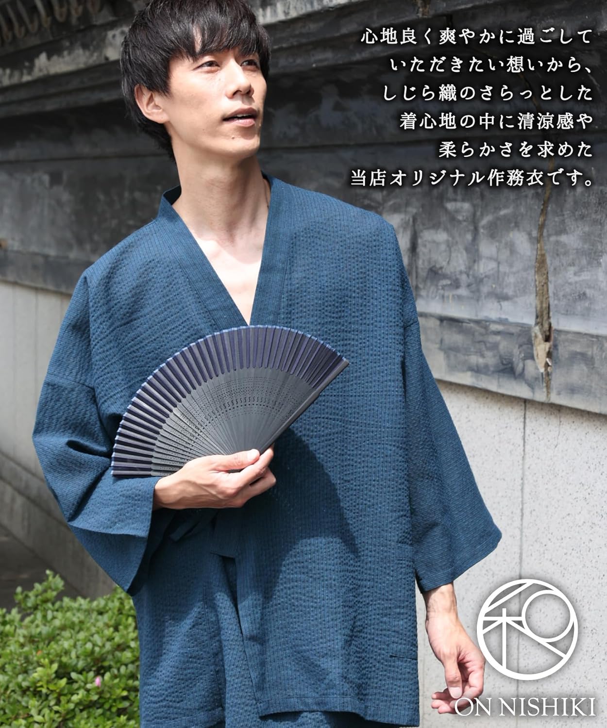 [ON NISHIKI] 作務衣 しじら織り メンズ 上下セット 綿100% 涼しい ルームウェア 部屋着 紳士 和柄 和服 M/L/LL/3L Amazonで販売中
