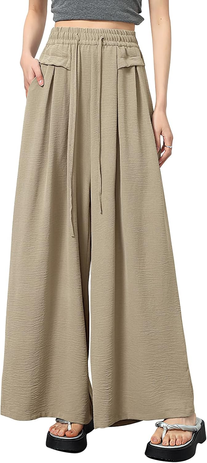 [PALAME] ワイドパンツ ロングパンツ レディース 【抜け感演出・きれいめシルエット・体型カバー】 春 夏 秋 ガウチョ ズボン ボトムス 薄手 ゆったり 脚長 着痩せ ウエストゴム イージー スラックス おしゃれ カジュアル 日常 Amazonで販売中