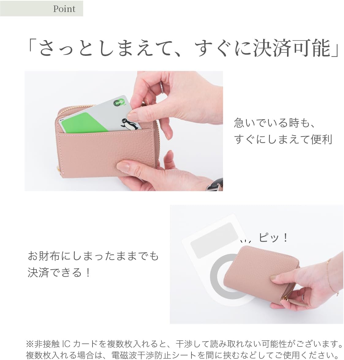 【カードも小銭もたっぷり収納】コンパクトなボディに、使いやすさのための工夫を詰め込みました。じゃばら式カードポケットでたっぷり大容量。ラウンドファスナーを開けば180度広がるので、使いたいカードが一目瞭然。小銭入れは便利なボックス型です。