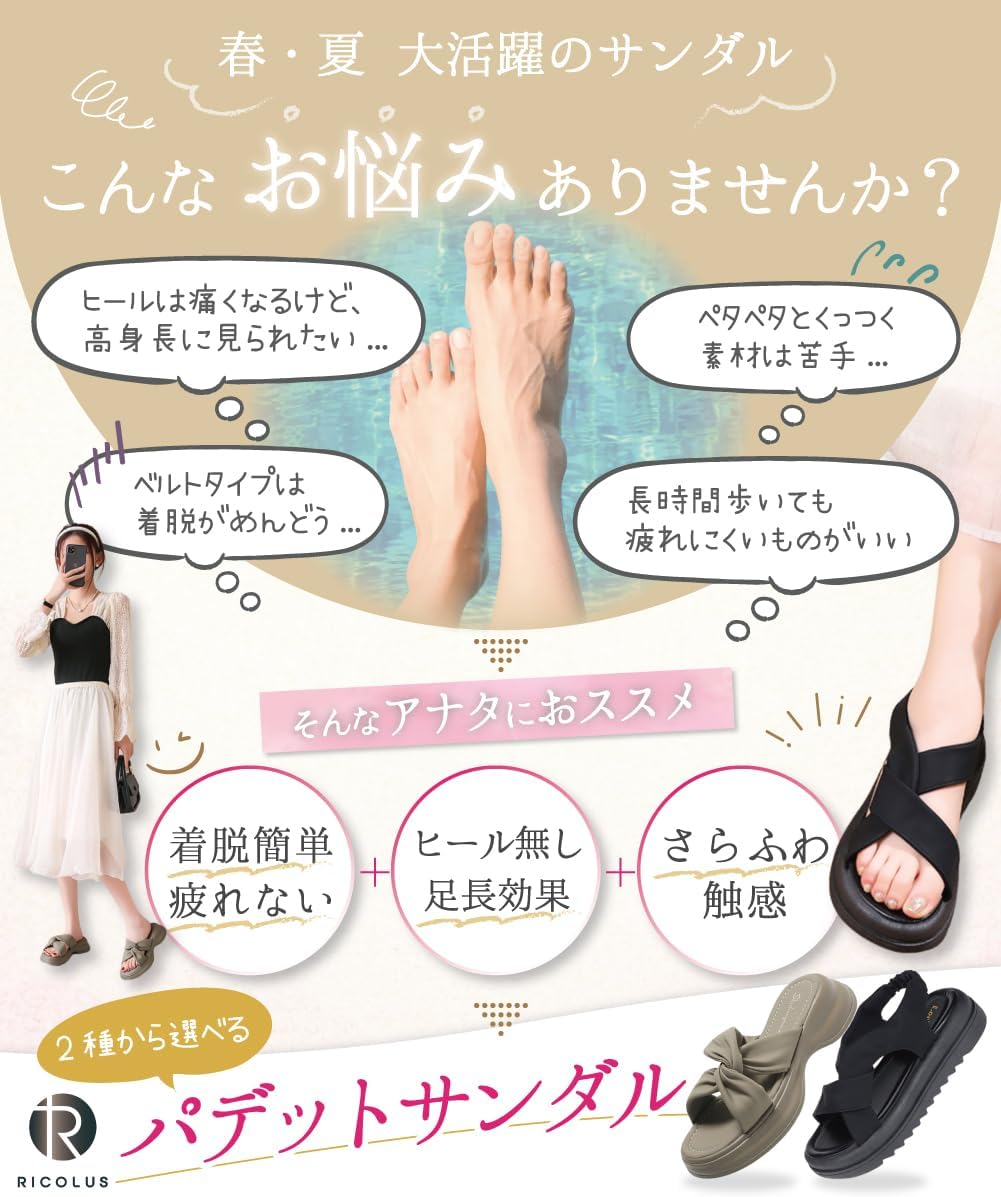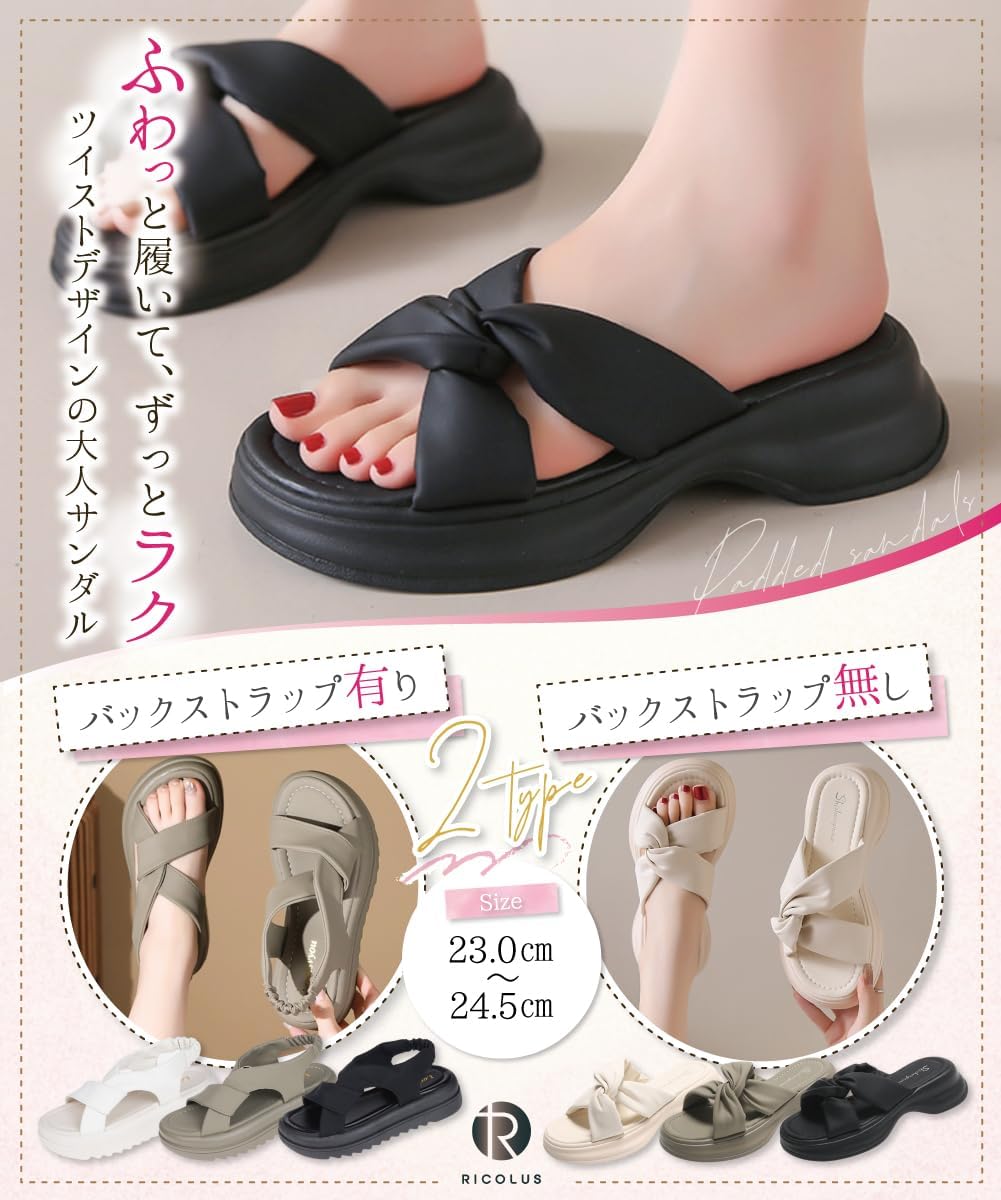 [RICOLUS] 厚底 サンダル レディース ソフト 軽量 シンプル デザイン フラットヒール  Amazonで販売中