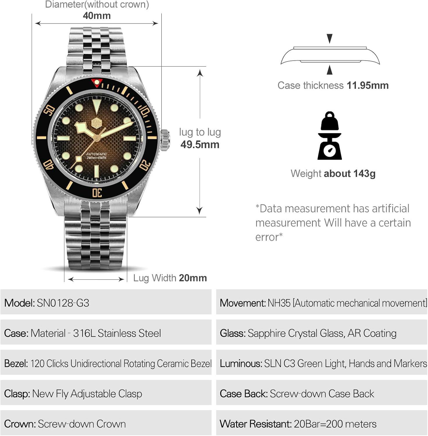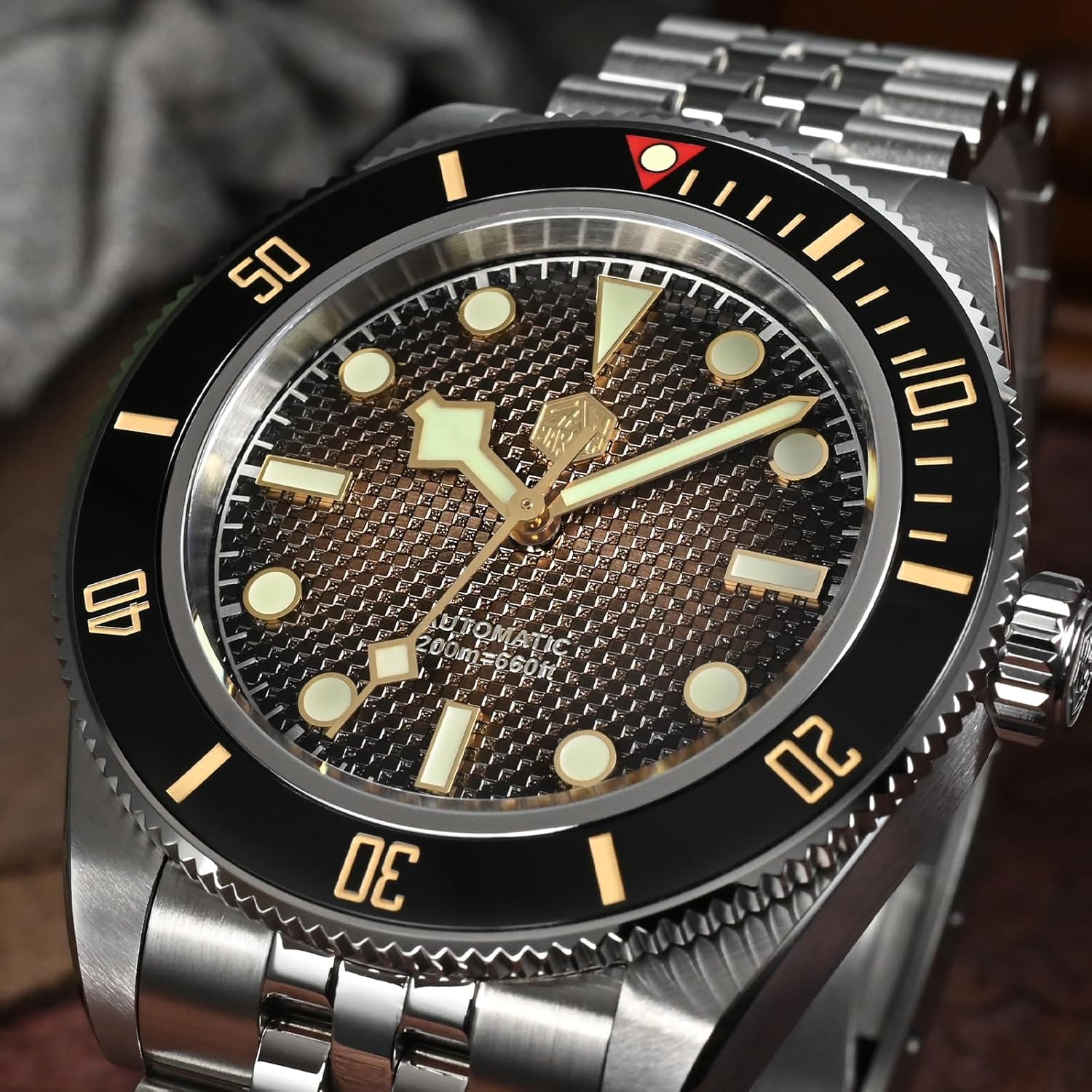 San Martin SN0128 BB58 自動腕時計 40mm サファイアクリスタル ダイブウォッチ 男性用 316L ステンレススチール 200m 防水, ブラウンダイヤル。, ブレスレット Amazonで販売中
