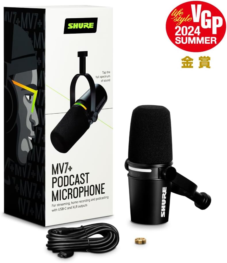 SHURE シュア MV7+ ポッドキャストマイクロホン ブラック MV7+-K : OBS 認証 ダイナミックマイク カーディオイド 単一指向性 USB-C XLR 有線 ノイズ除去 配信 ストリーミング YouTube 録音 レコーディング 音楽 実況 ゲーム ゲーミング ボーカル DTM 宅録 テレワーク iOS Android Mac Windows対応 【国内正規品/メーカー保証2年】 Amazonで販売中