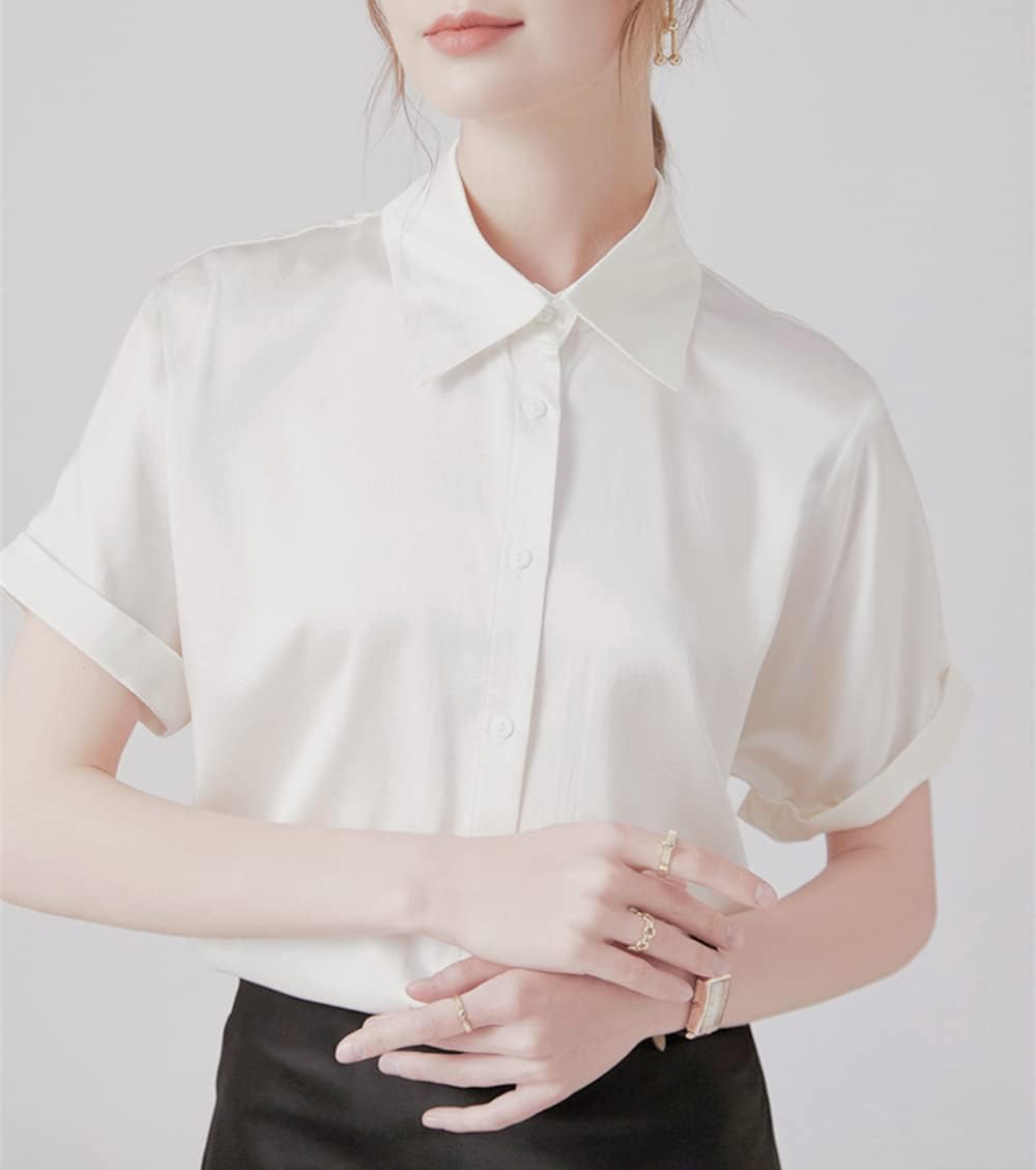 [SPRING SEAON] シャツブラウス レディース トップス 半袖 夏 カジュアル オフィス ノーアイロン 形態安定 とろみ ゆったり 大きいサイズ ビジネス ファッション 通勤 業務服 高通気性 2S~4L Amazonで販売中