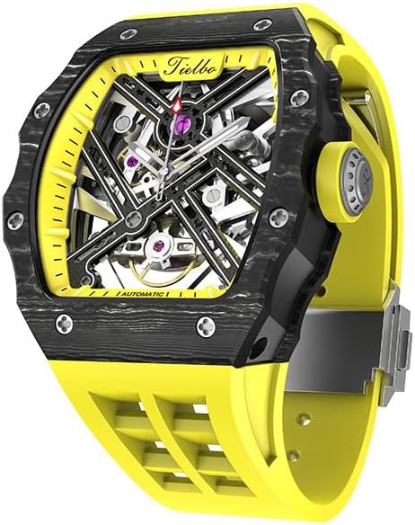 SPUFALER メンズ機械式腕時計 自動機械式ムーブメント 防水 夜光サファイア ミラーウォッチ メンズ カーボンファイバーケース, イエロー Amazonで販売中