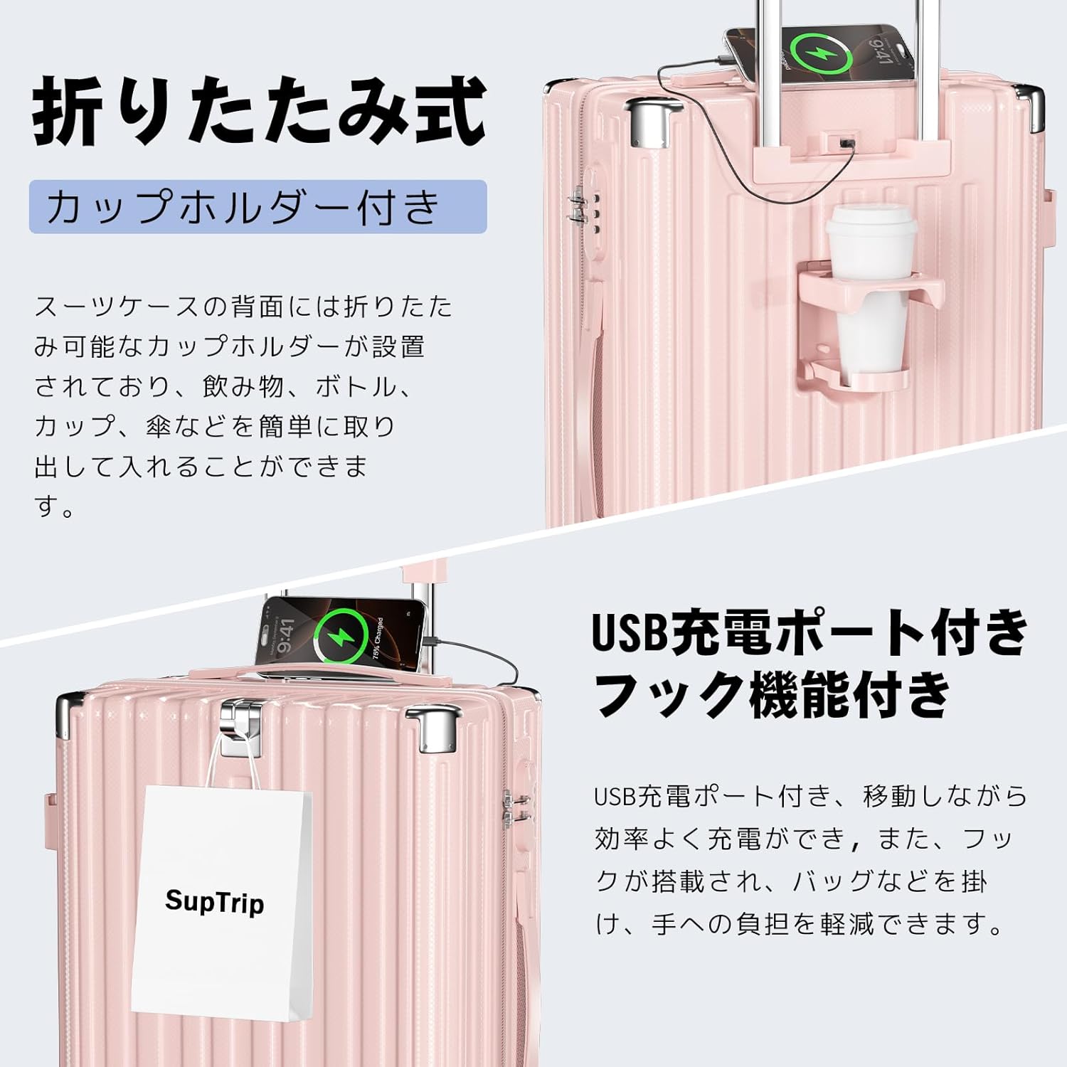 [SupTrip] スーツケース 機内持ち込み 多機能 キャリーケース 大型 超軽量 キャリーバッグ 耐衝撃 USBポート付き カップホルダー付き 充電機能 荷物フック 隠しフック機能 静音 ダブルキャスター 360度回転 修学 泊まる 旅行 出張 (ピンク, S (40L/1-3泊/機内持込)) Amazonで販売中