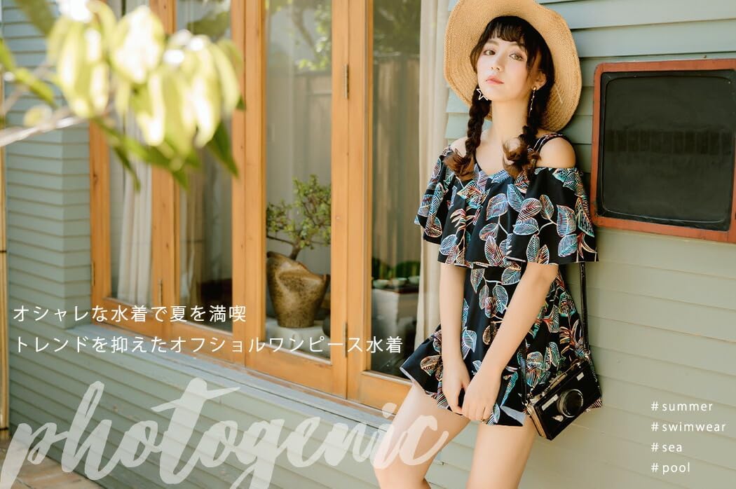 TeddyShop 水着 レディース 体型カバー ワンピース オールインワン オフショルダー フレア 大きいサイズ hys1515 Amazonで販売中