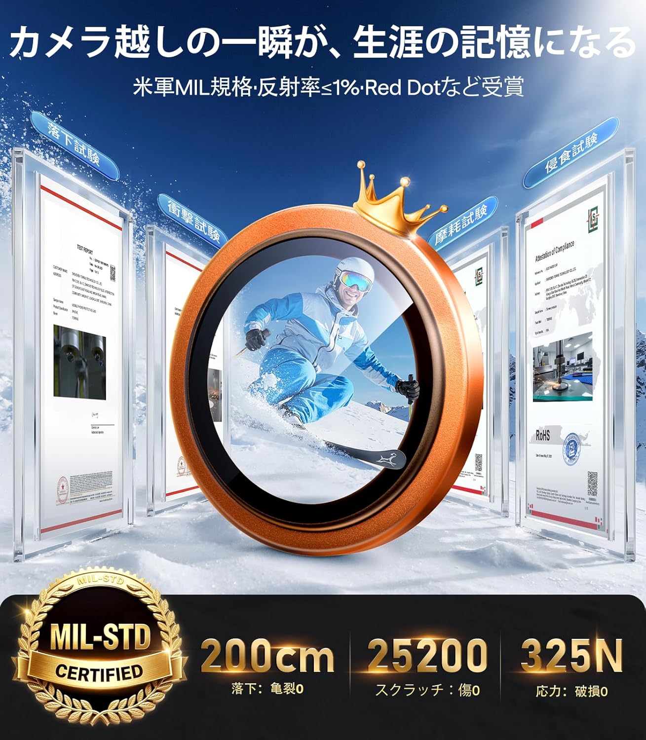 対応機種·今なら365日保証付き】For iPhone 17 Pro / 17Pro Max カメラ保護 ゴズミックオレンジ|米軍MIL-STD-810G認証(番号: GZMR220300626209) 365日保証付き:万が一不意が発生する時は即時交換/返金→ 「商品ページ→販売元→質問」で24h日本語で即対応
