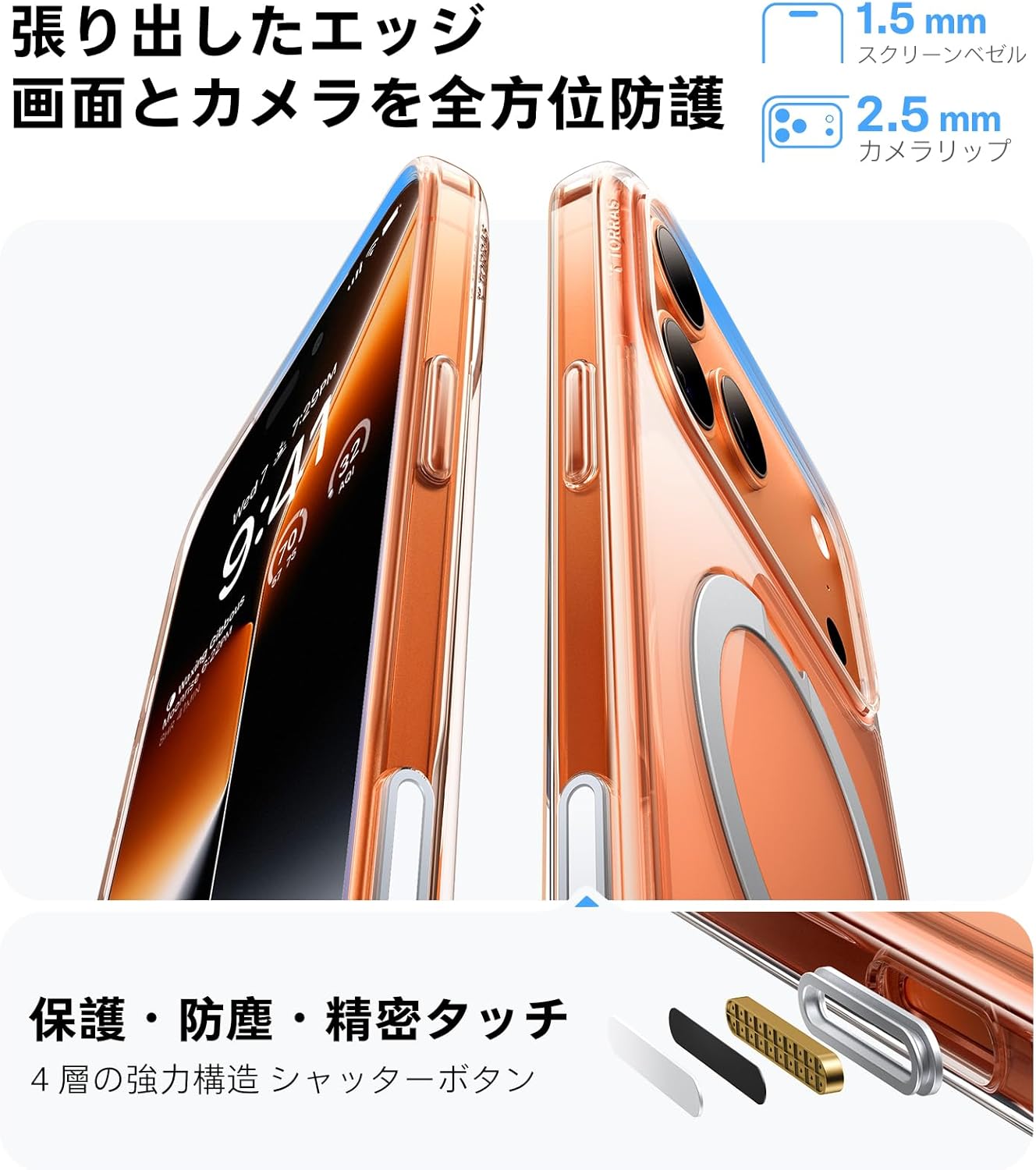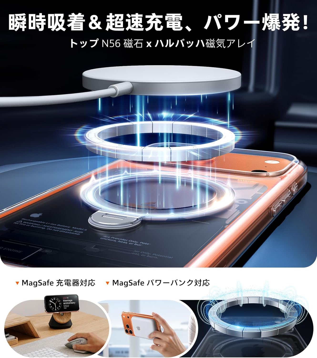 【ケーブルを省く、マグネット充電】特許技術に基づくN52マグネットは最適な配列で設計されて、他のケースの磁石より40%も強い。通勤時、車載ホルダーに近づけるだけで吸着し、急ブレーキや悪路でも落ちない。片手でナビ調整や通話が可能で、ケーブルの手間なく視線を逸らさず安全。交差点でもナビがしっかり固定され、注意力が散漫にならない。到着後はワンタッチで取り外し、自宅ではワイヤレス充電も簡単。ケーブルレスで運転が集中的に、通勤も楽になる。