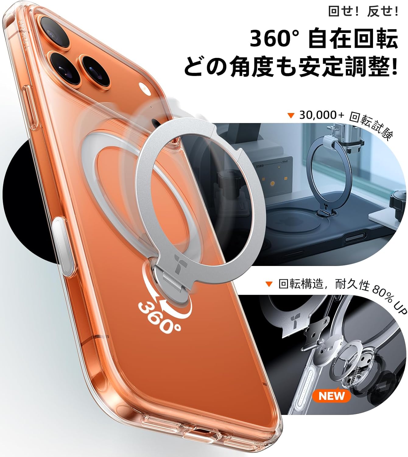 TORRAS iPhone 17 Pro Max 用 ケース【多機能一体・360°新定点回転スタンド】 Magsafe対応 【Ostand Q3 Spin】高耐久性 耐衝撃 ゼンマイ式スタンド リング 縦横両対応 マグネット搭載 急速充電対応 指紋防止 クリア Amazonで販売中