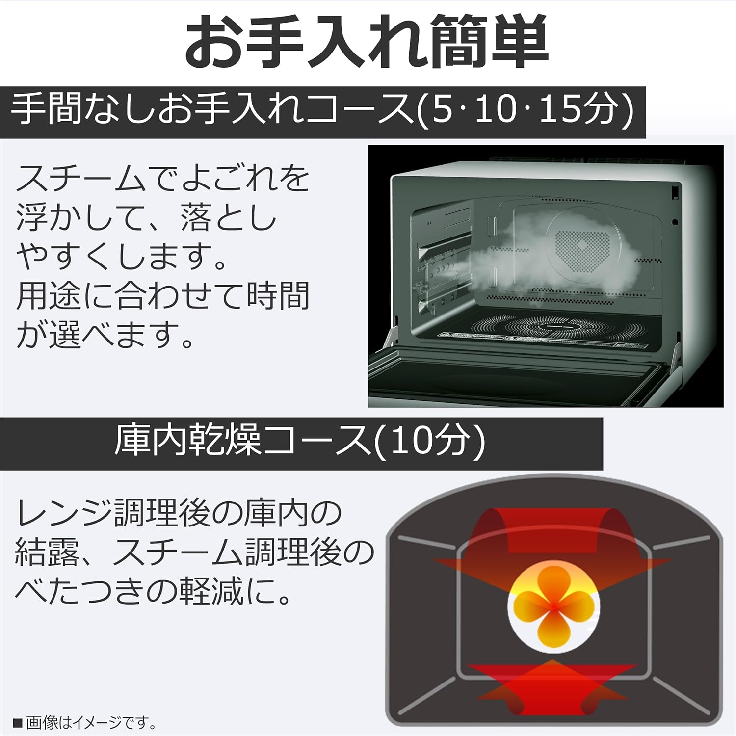 ✅【お手入れ簡単】「遠赤・脱臭ブラックコート」庫内には遠赤放射率の高い脱臭コーティングを採用。*扉部・底面を除く。【お手入れ】手間なしお手入れコース(10分)。過熱水蒸気だからスチームで汚れを浮かし、ラクラクお手入れ。フラットな丸い天井で拭きやすい。