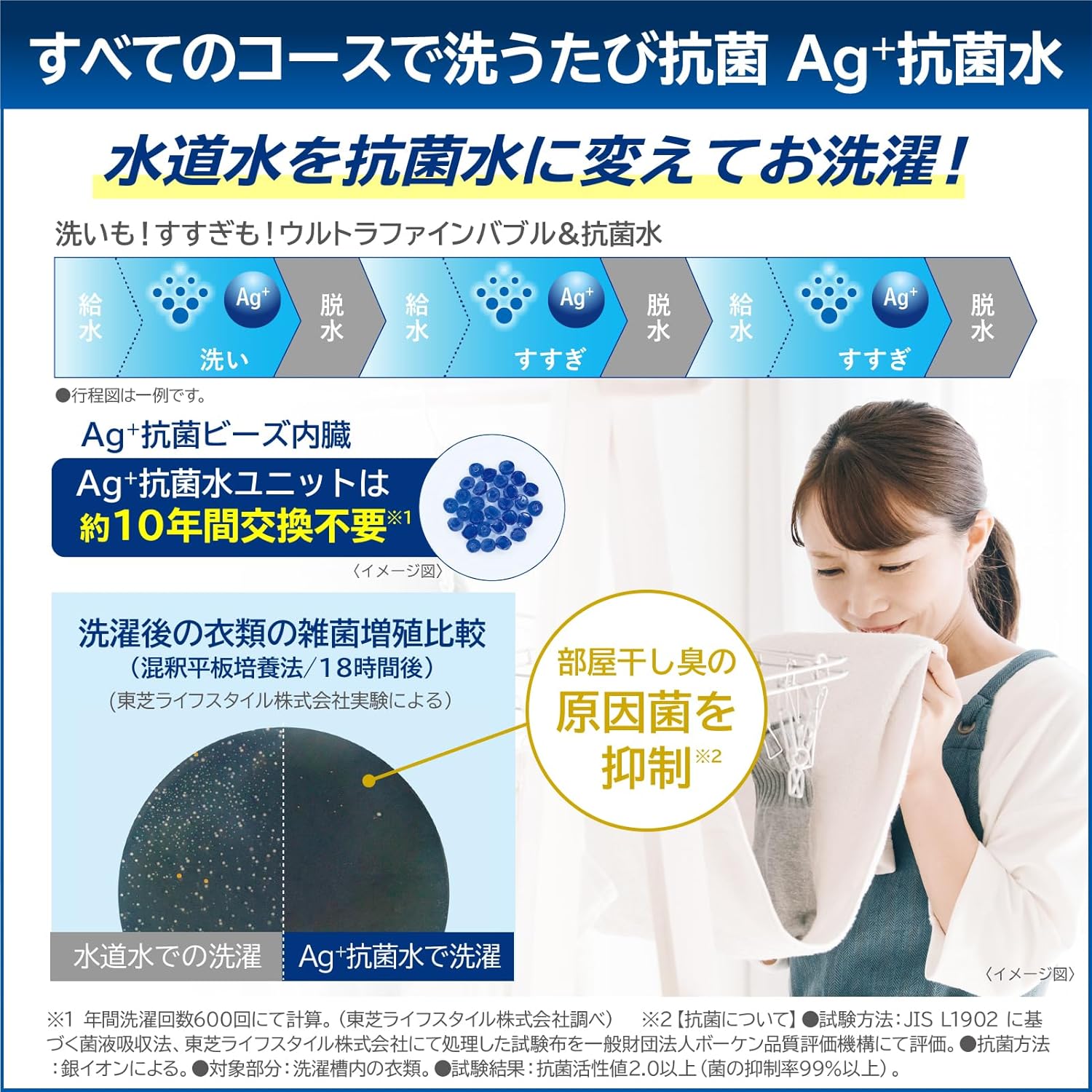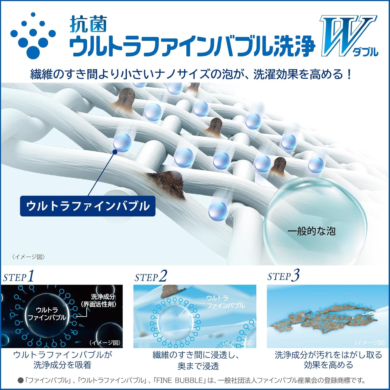 [※2]抗菌について●試験方法:JIS L1902に基づく菌液吸収法、当社にて処理した試験布を一般財団法人ボーケン品質評価機構にて評価 ●抗菌方法:銀イオンによる ●対象部分:洗濯槽内の衣類 ●試験結果:菌の減少率99%以上