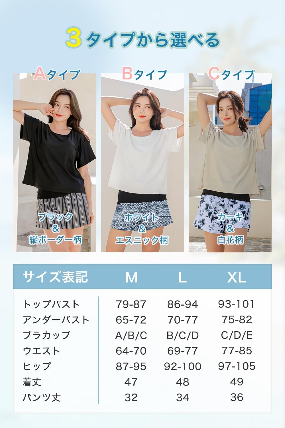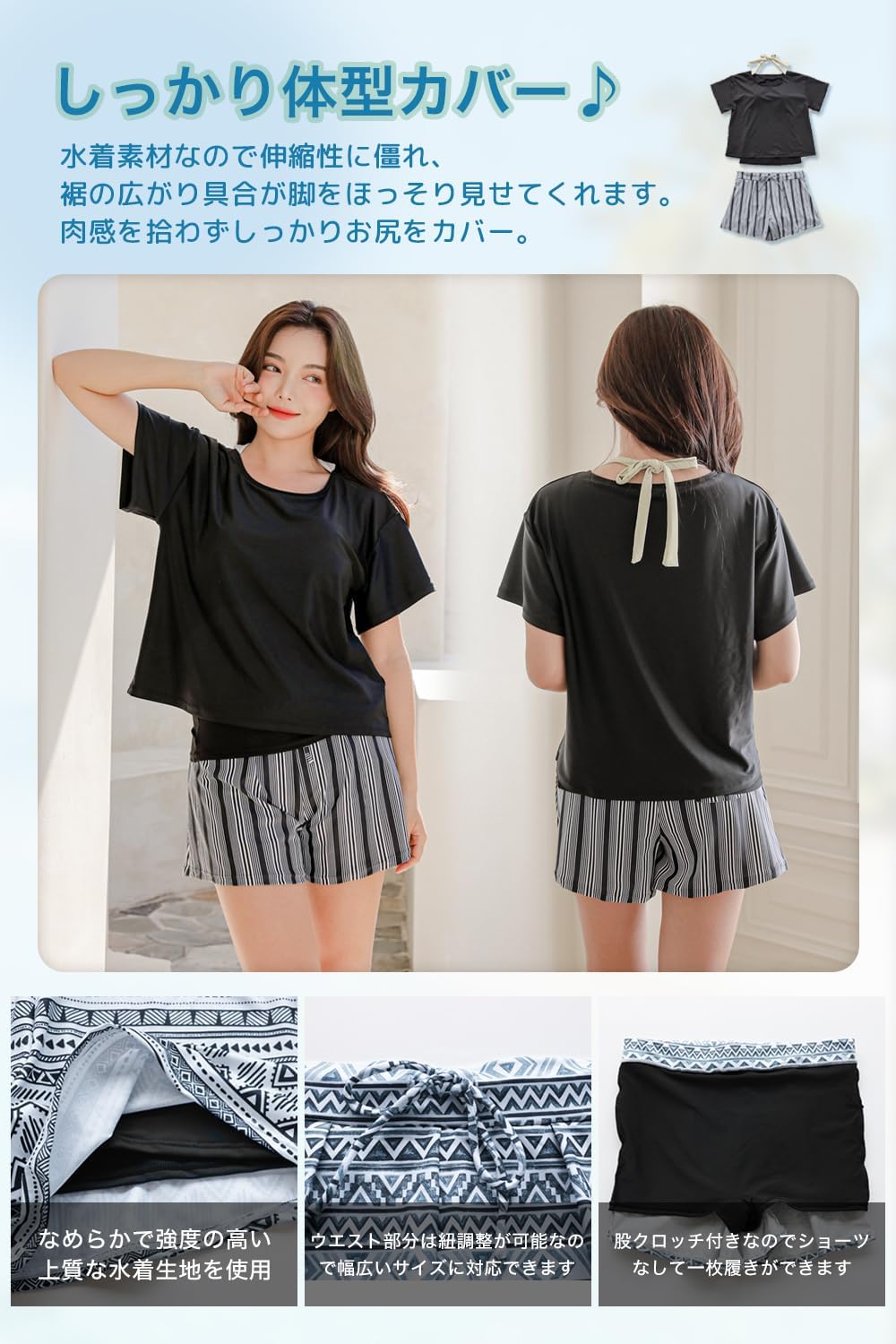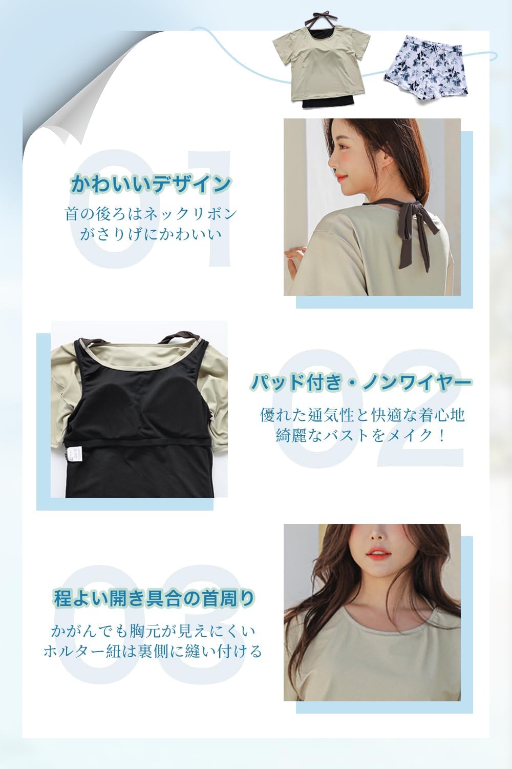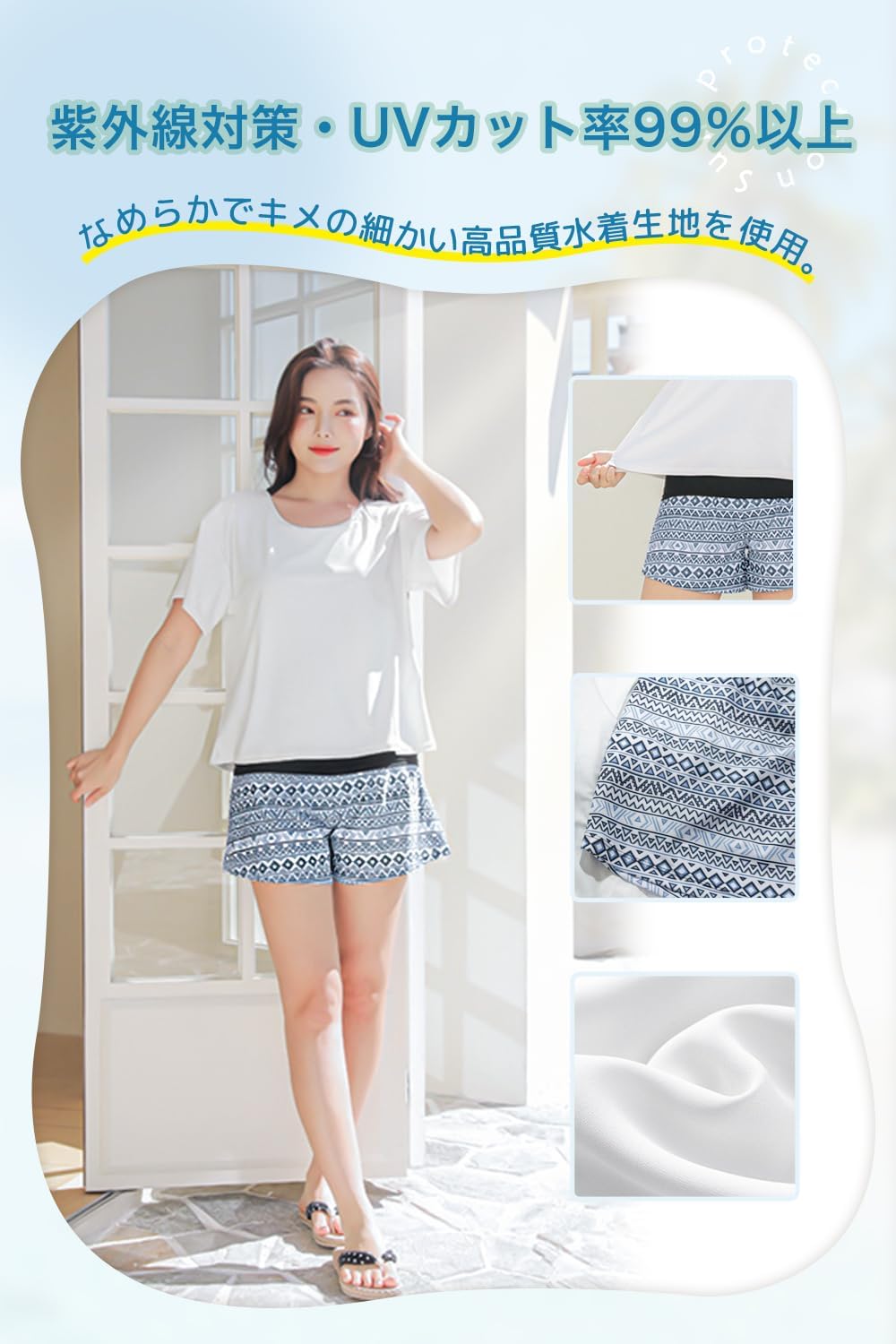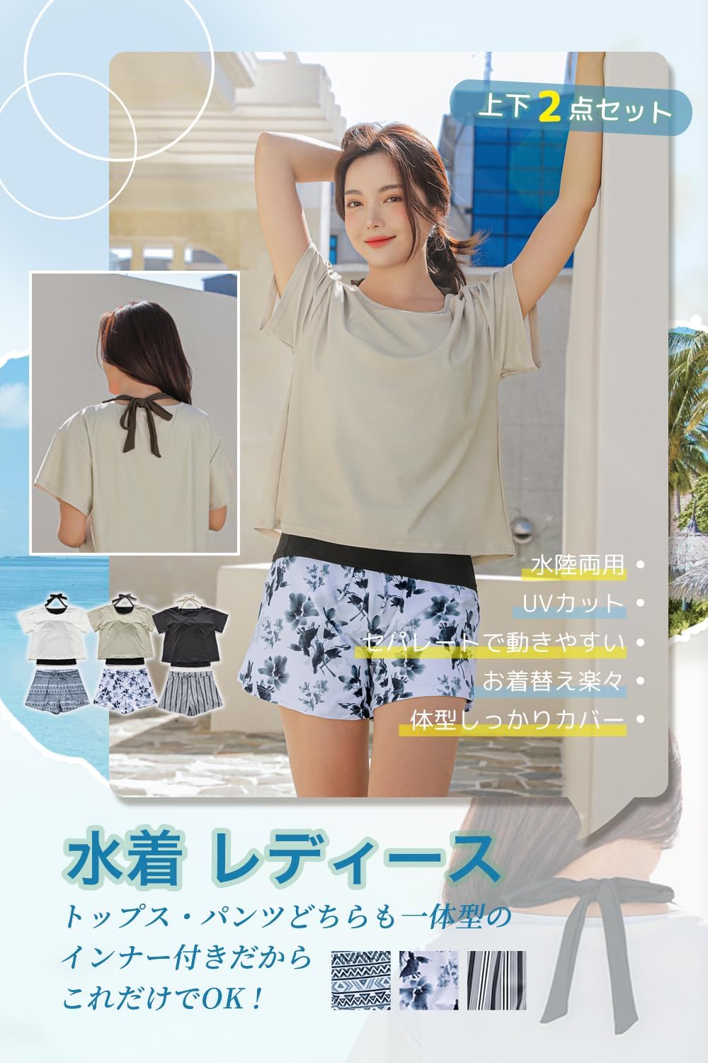 [Ttoitv] 水着 レディース 2点セット 体型カバー UVカットレイヤード風 タンキニ セパレート 半袖ラッシュガード トップス ショートパンツ かわいい ノンワイヤー パッド付き Amazonで販売中