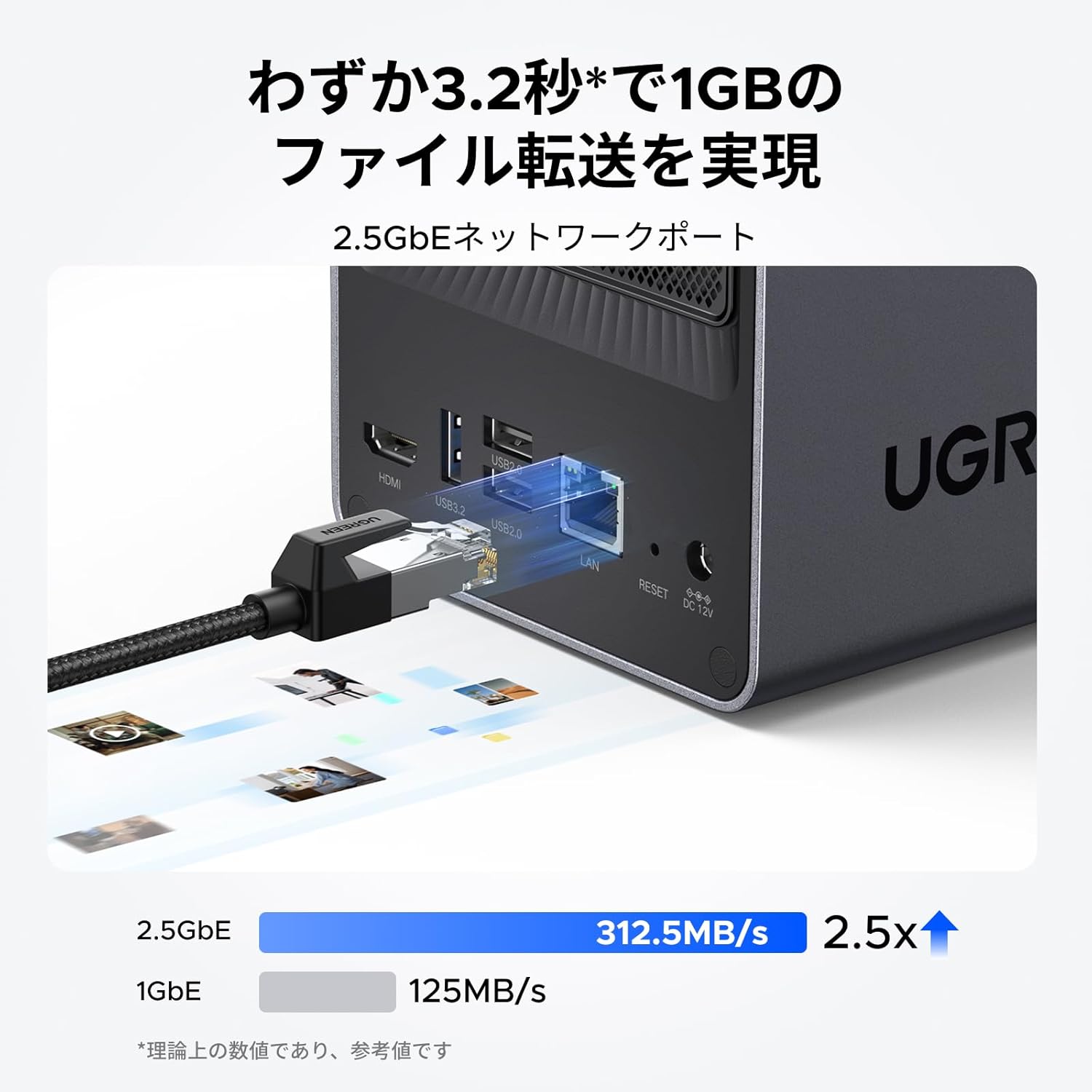 業界トップクラスの性能:第12世代Intel N100プロセッサー & 2.5GbEネットワークポート搭載。複数アプリの同時動作も快適で、1GBファイルをわずか3秒で転送可能。