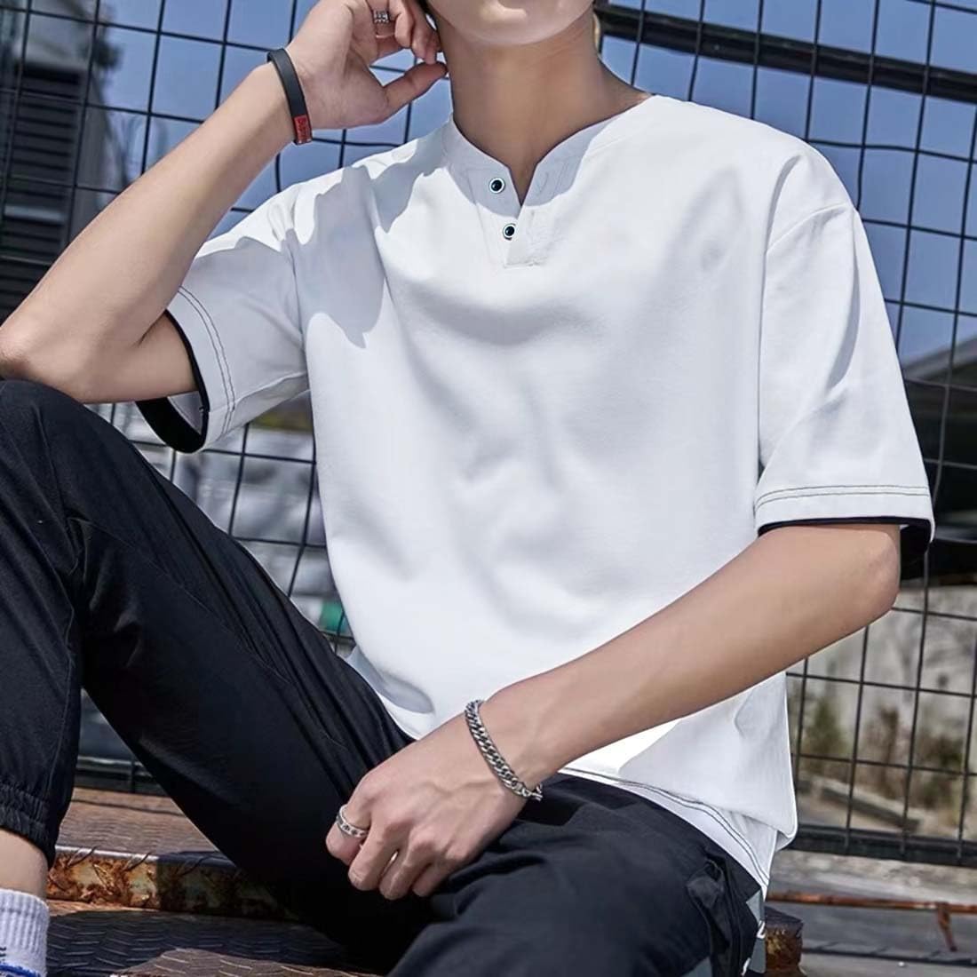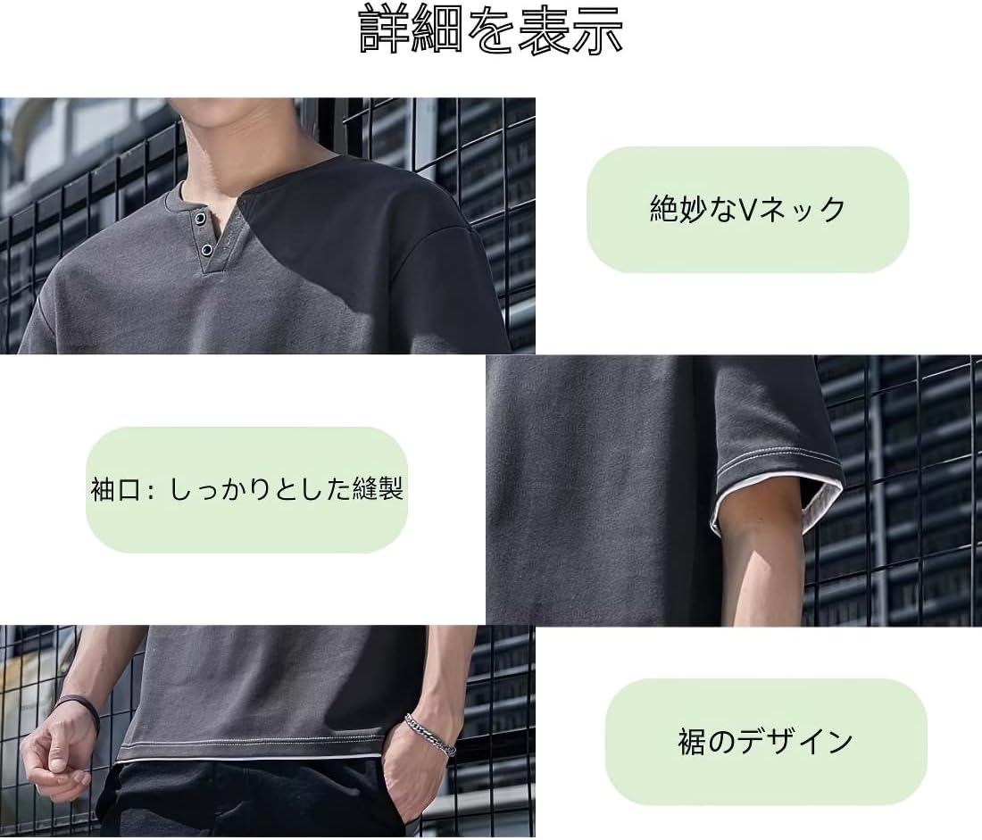 [Yezai] tシャツ メンズ 半袖 重ね着風 夏服 五分袖 通気性 速乾 Vネック カジュアル ゆったり 無地 オシャレ かっこいい 夏 ティーシャツ 大きいサイズ Amazonで販売中